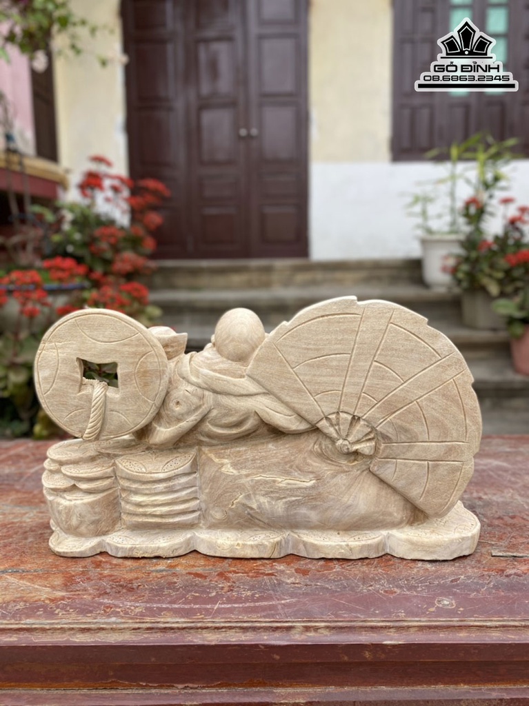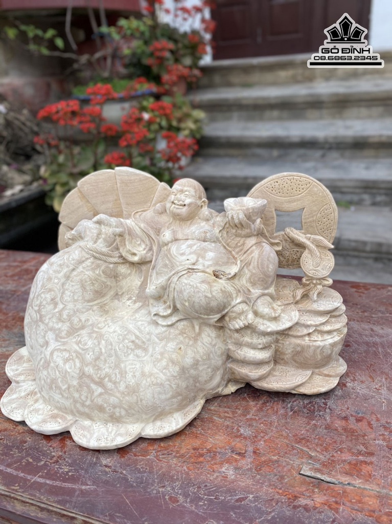 Tượng Phật Di Lặc Gỗ Nu Nghiến Cao 23 Ngang 41 Sâu 24 (cm)