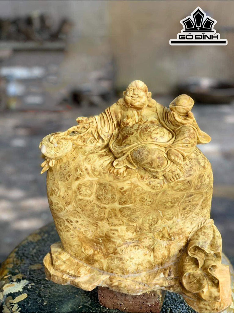 Tượng Phật Di Lặc Gỗ Nu Nghiến Cao 27 Ngang 27 Sâu 15 (cm)