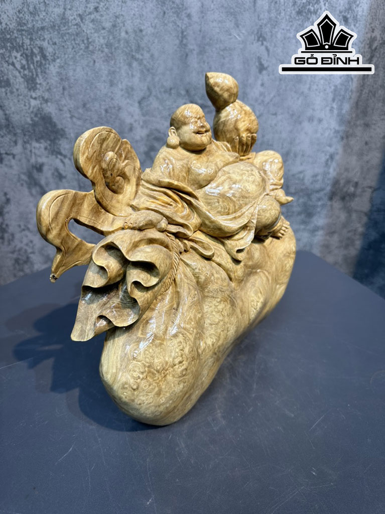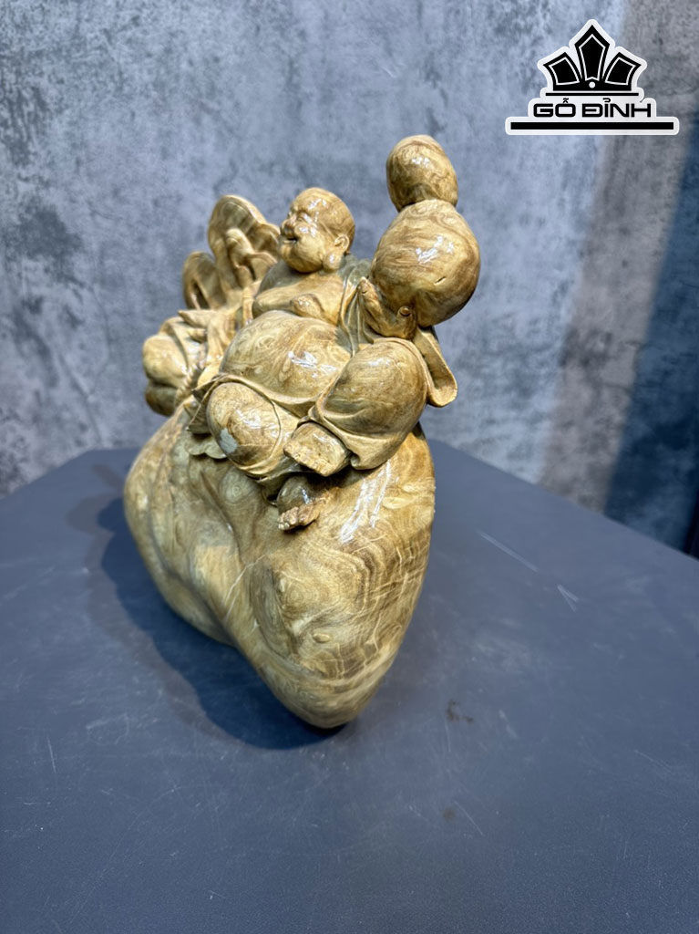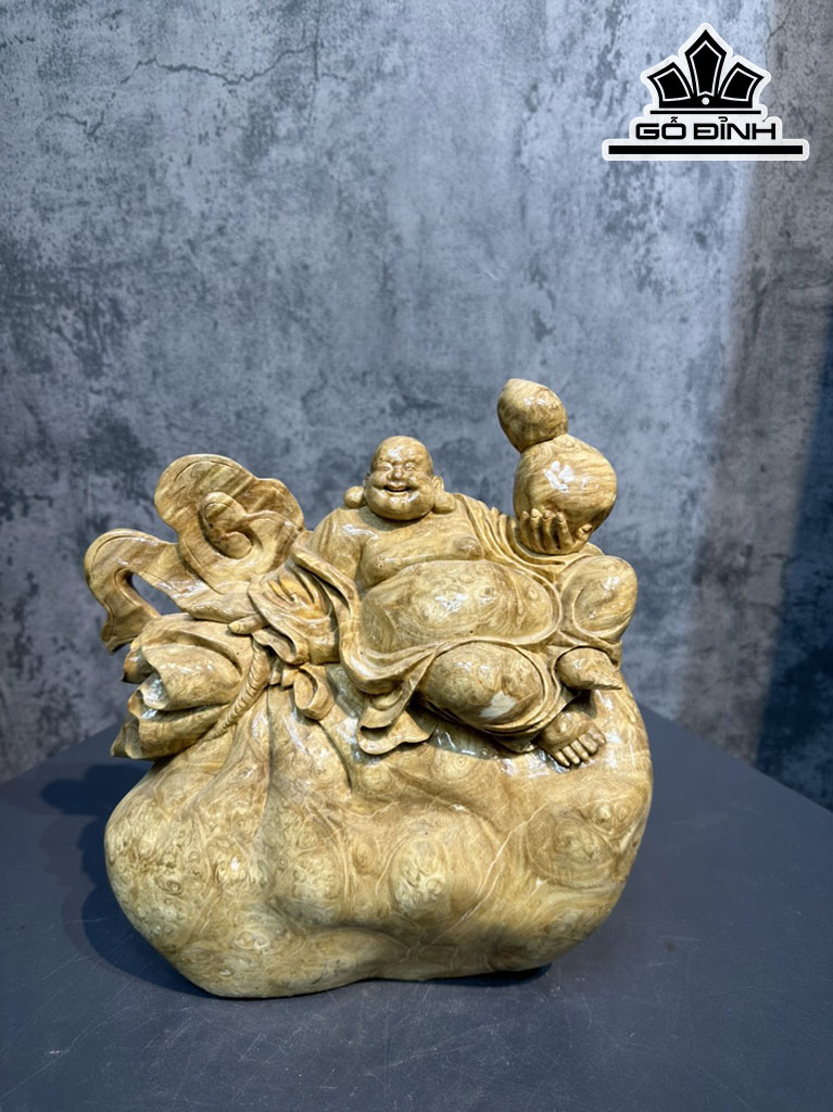 Tượng Phật Di Lặc Gỗ Nu Nghiến Cao 28 Ngang 25 Sâu 10 (cm)