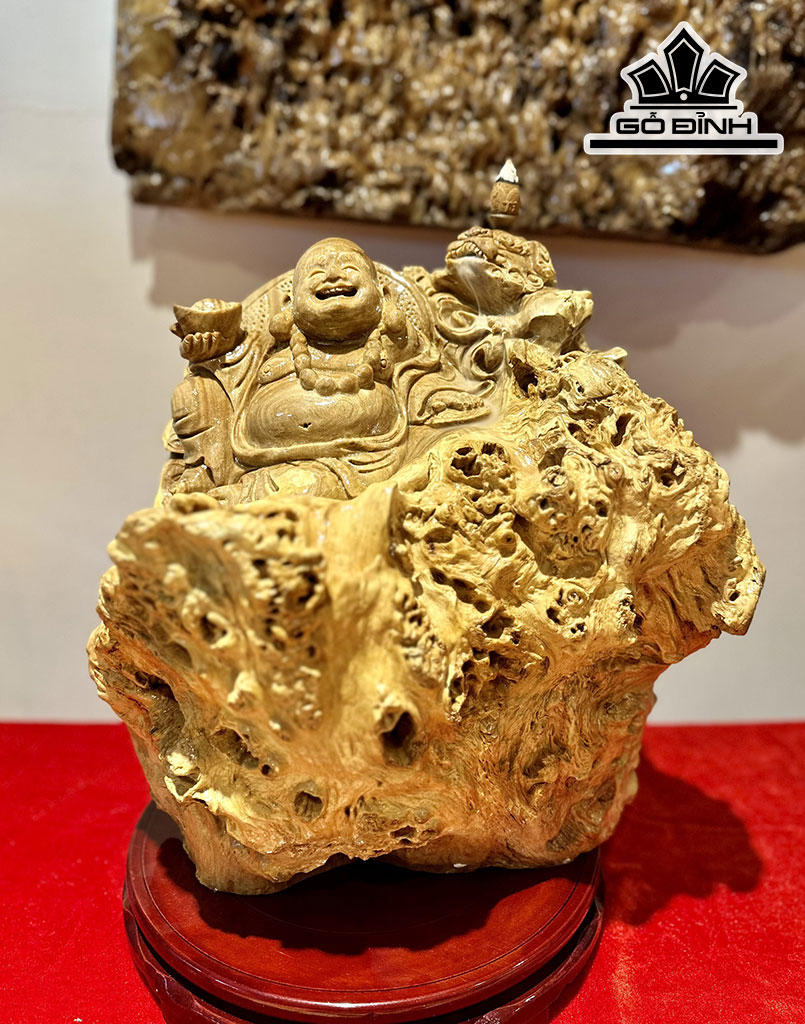 Tượng Phật Di Lặc Gỗ Nu Nghiến Cao 38 Ngang 38 Sâu 28 (cm)