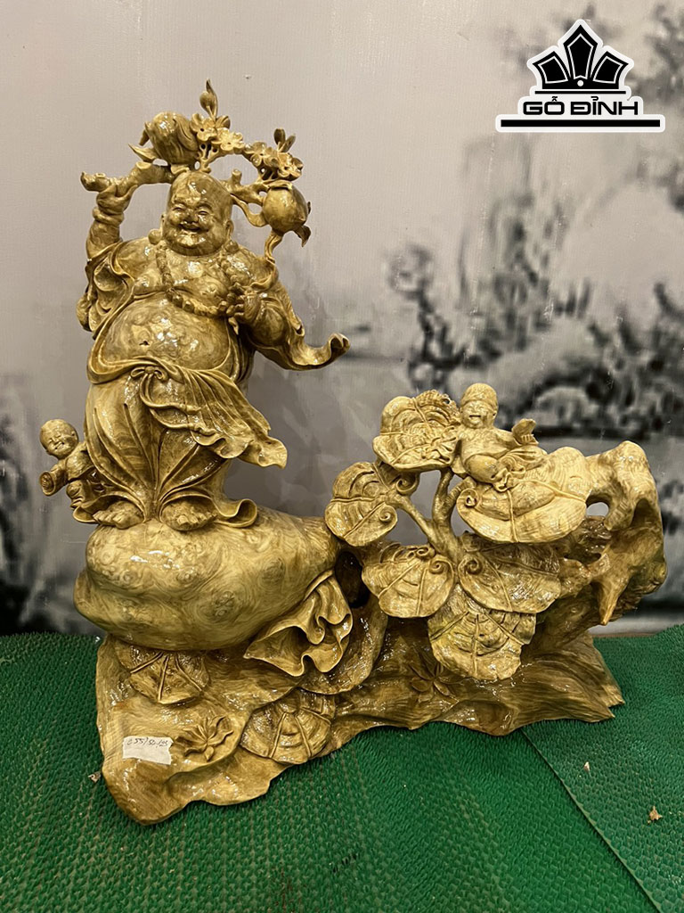 Tượng Phật Di Lặc Gỗ Nu Nghiến Cao 55 Ngang 50 Sâu 23 (cm)