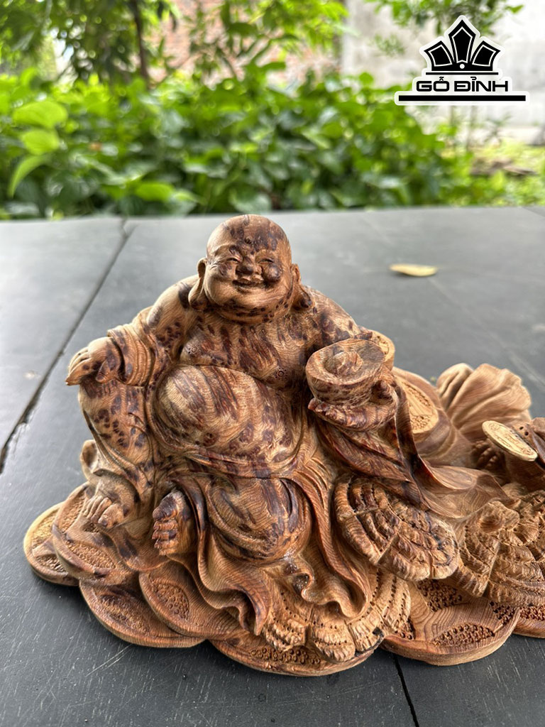 Tượng Phật Di Lặc Gỗ Nu Ngọc Am Cao 16 Ngang 30 Sâu 18 (cm)