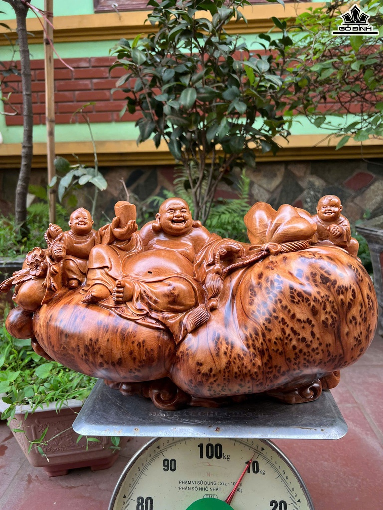 Tượng Phật Di Lặc Gỗ Nu Ngọc Am Cao 27 Ngang 46 Sâu 23 (cm)