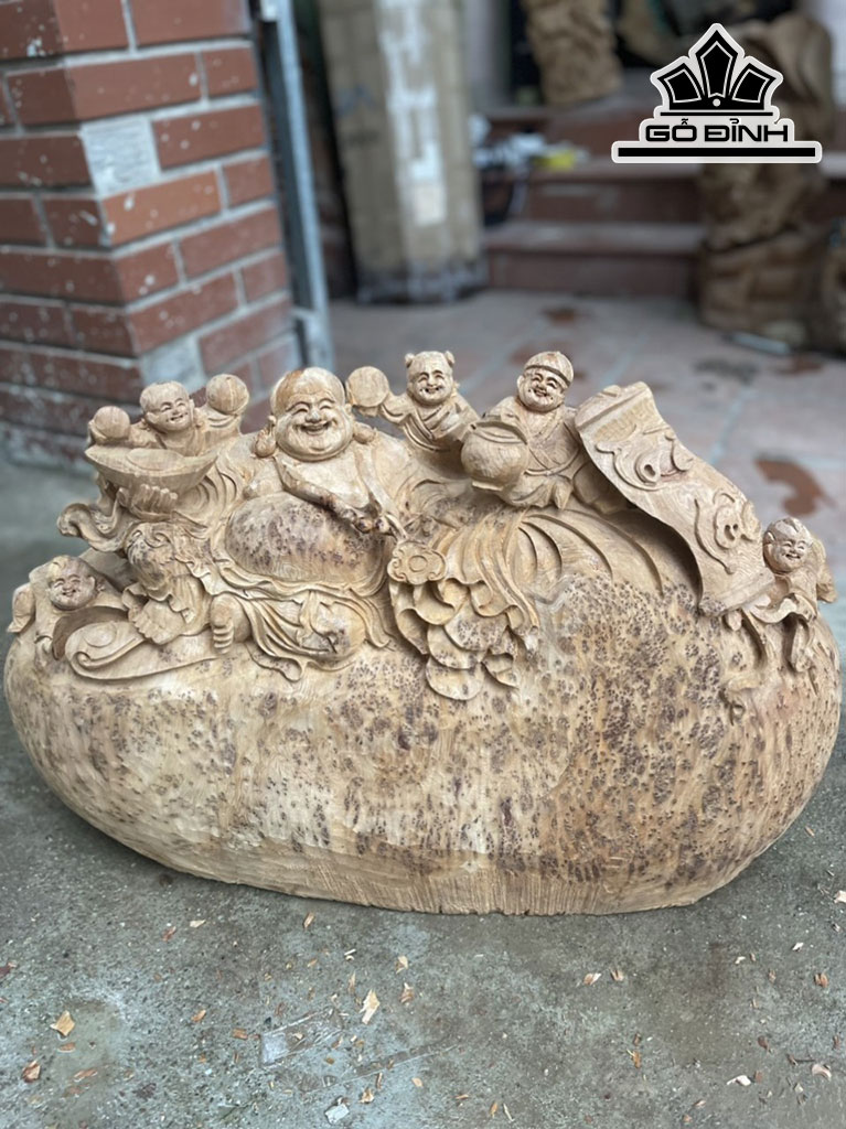 Tượng Phật Di Lặc Gỗ Nu Ngọc Am Cao 42 Ngang 70 Sâu 25 (cm)