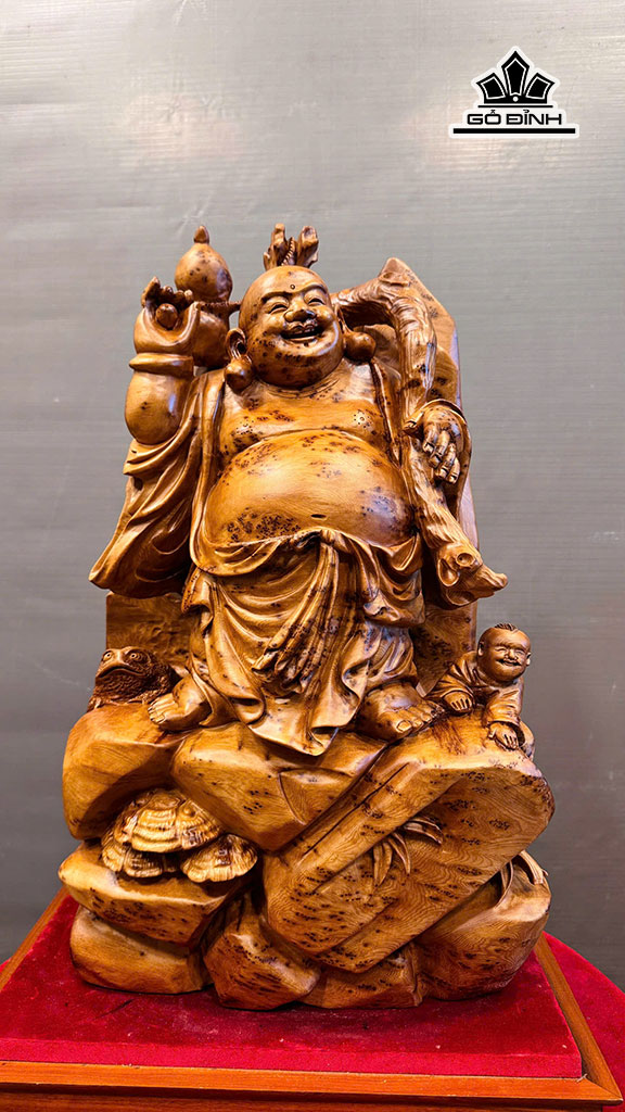 Tượng Phật Di Lặc Gỗ Nu Ngọc Am Cao 54 Ngang 33 Sâu 29 (cm)