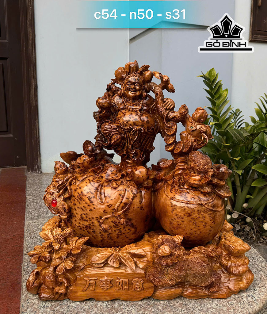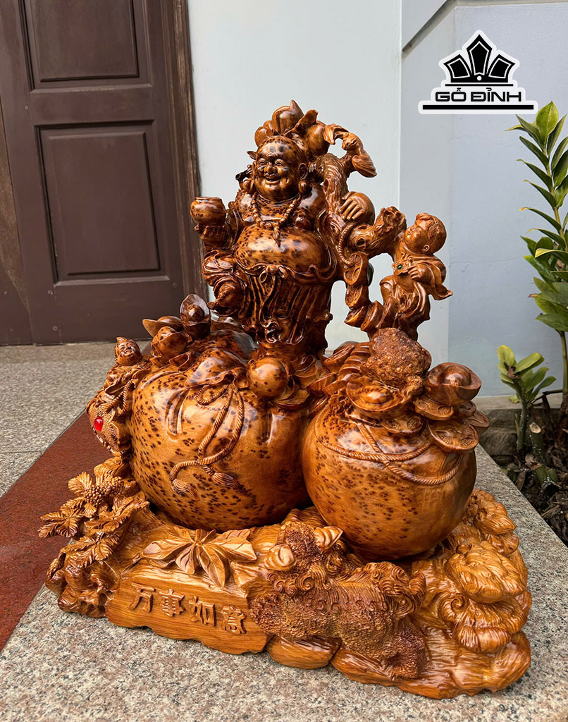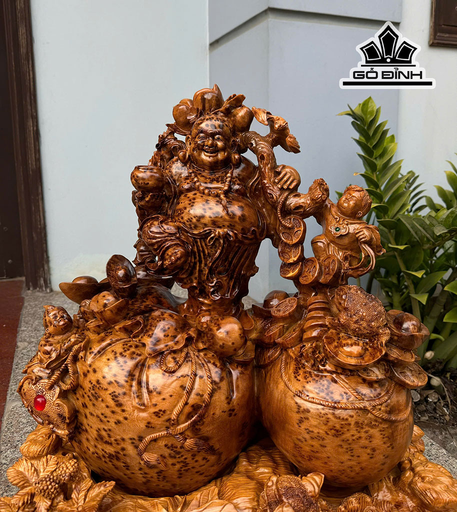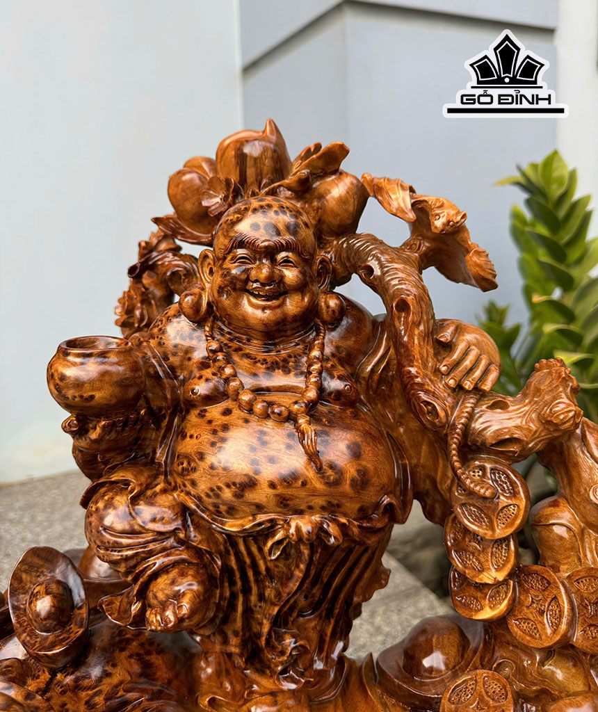 Tượng Phật Di Lặc Gỗ Nu Ngọc Am Cao 54 Ngang 50 Sâu 31 (cm)