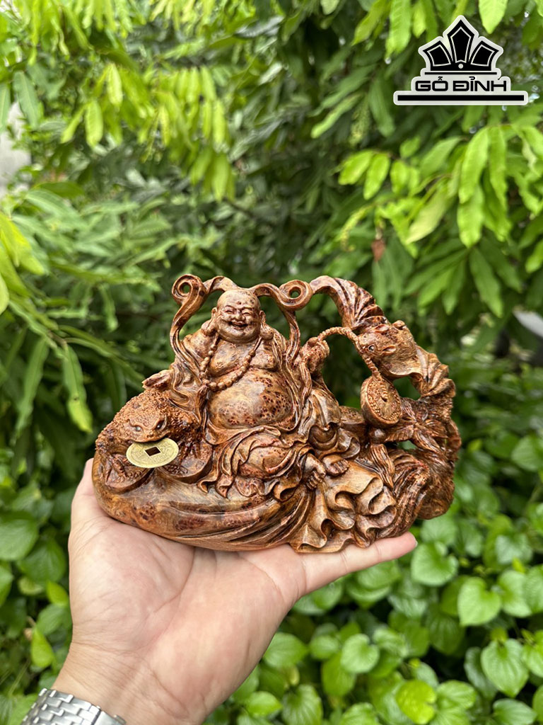 Tượng Phật Di Lặc Gỗ Nu Ngọc Am Cao 9 Ngang 21 Sâu 12 (cm)