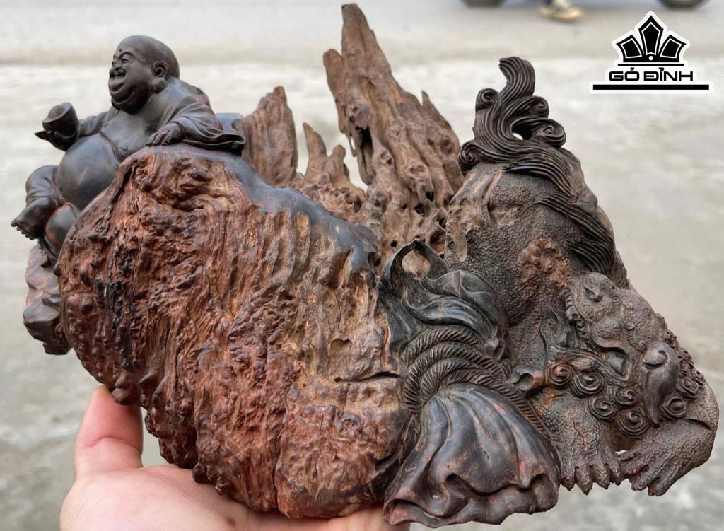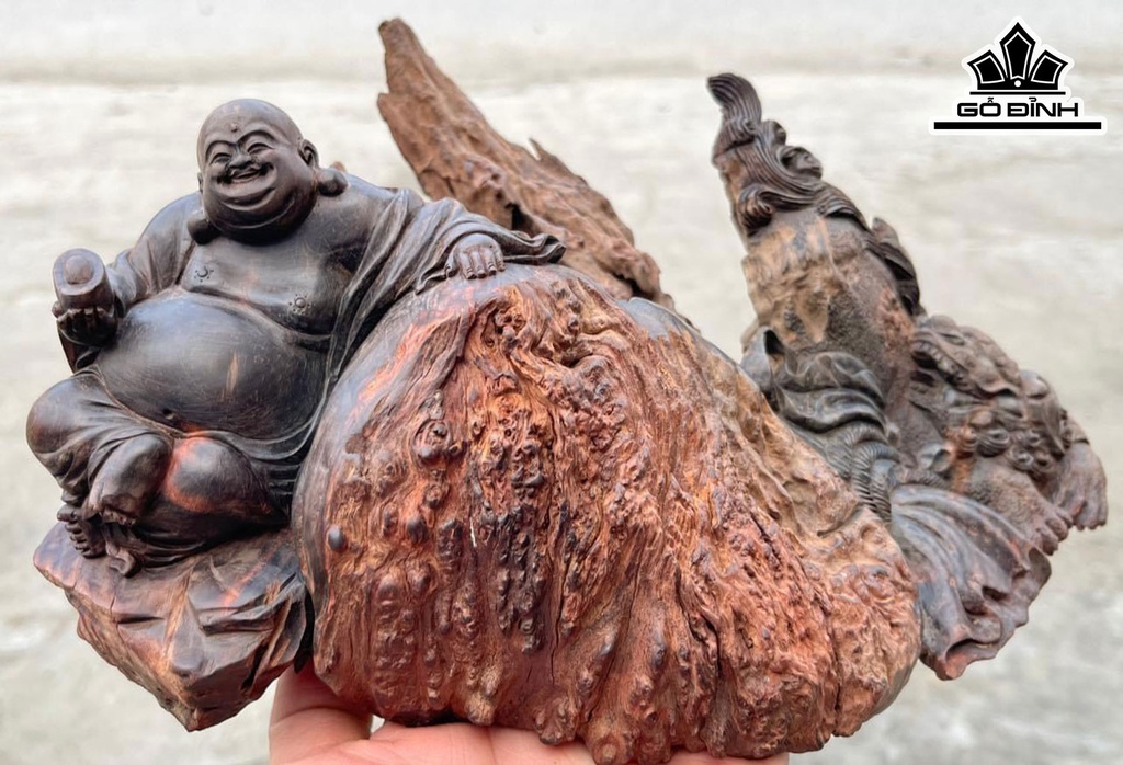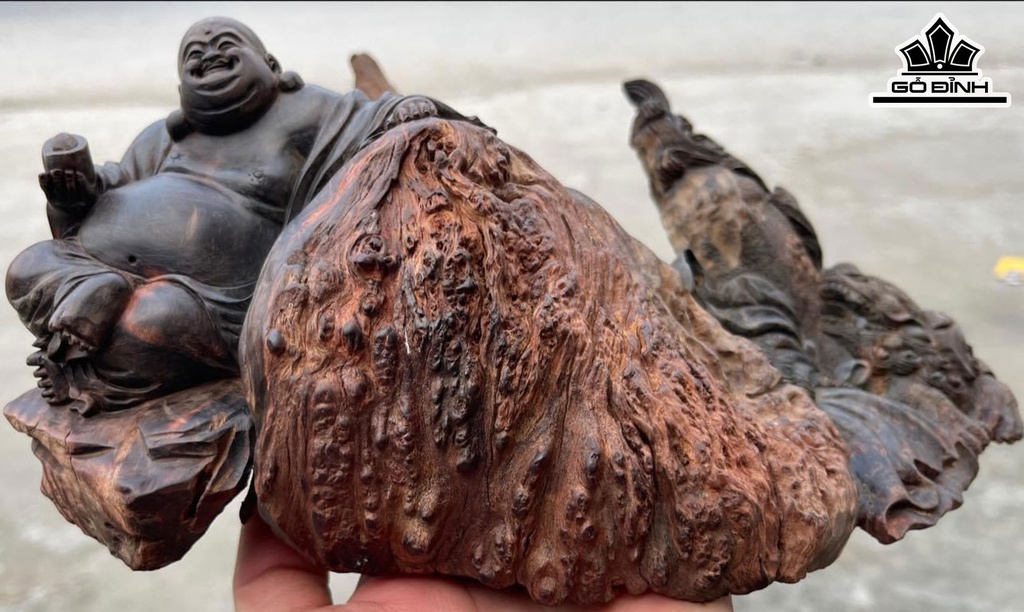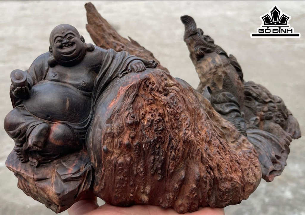 Tượng Phật Di Lặc Gỗ Nu Trắc Cao 12 Ngang 28 Sâu 21 (cm)