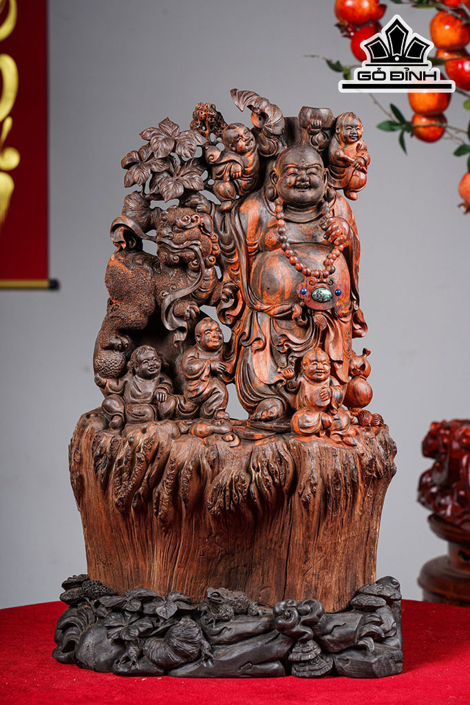 Tượng Phật Di Lặc Gỗ Nu Trắc Cao 35 Ngang 30 Sâu 14 (cm)