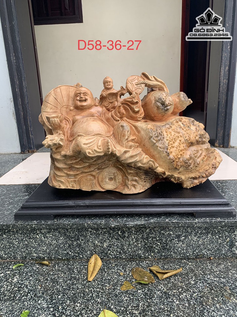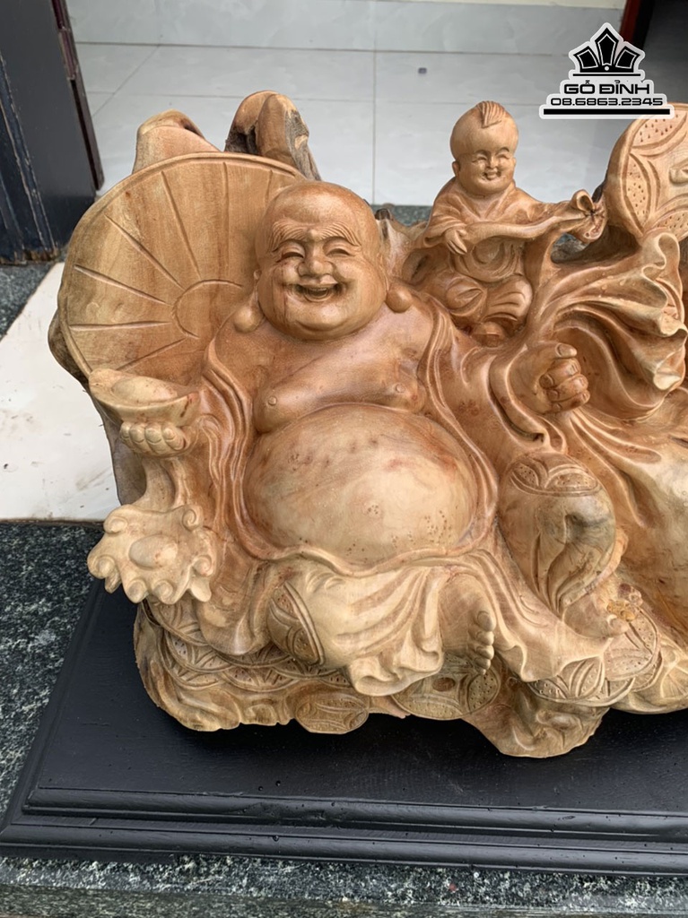 Tương Phật Di Lặc Gỗ Nu Xá Xị Cao 26 Ngang 58 Sâu 27 (cm)