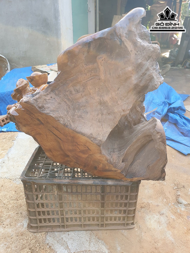 Tượng Phật Di Lặc Gỗ Nu Xá Xị Cao 60 Ngang 55 Sâu 40 (cm)