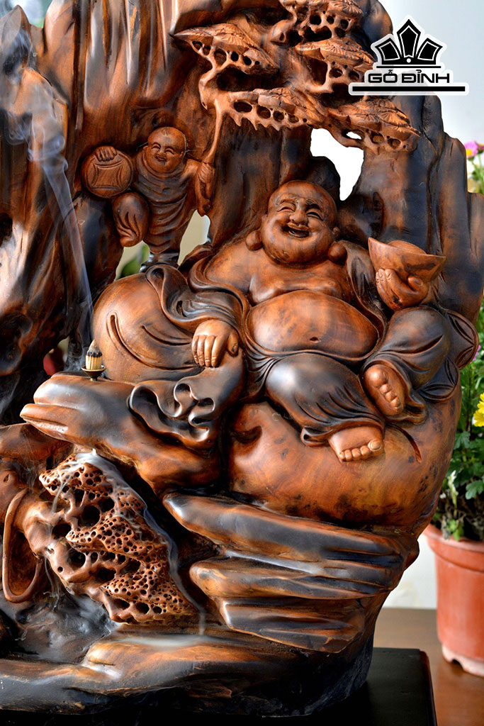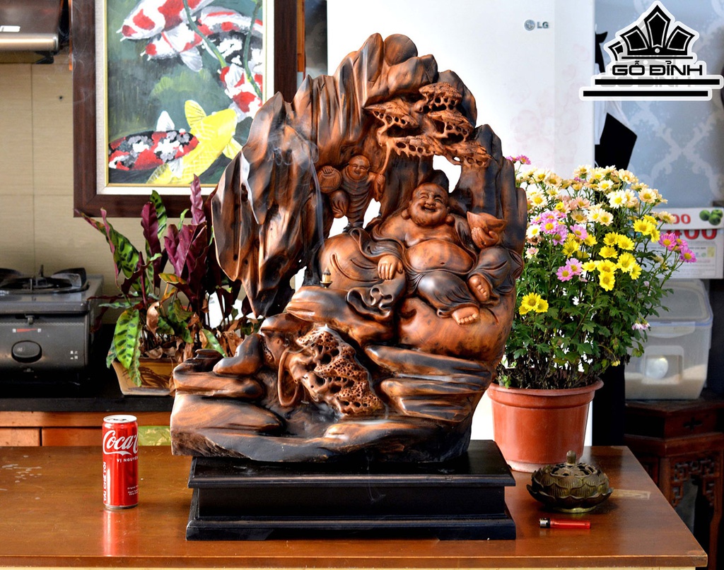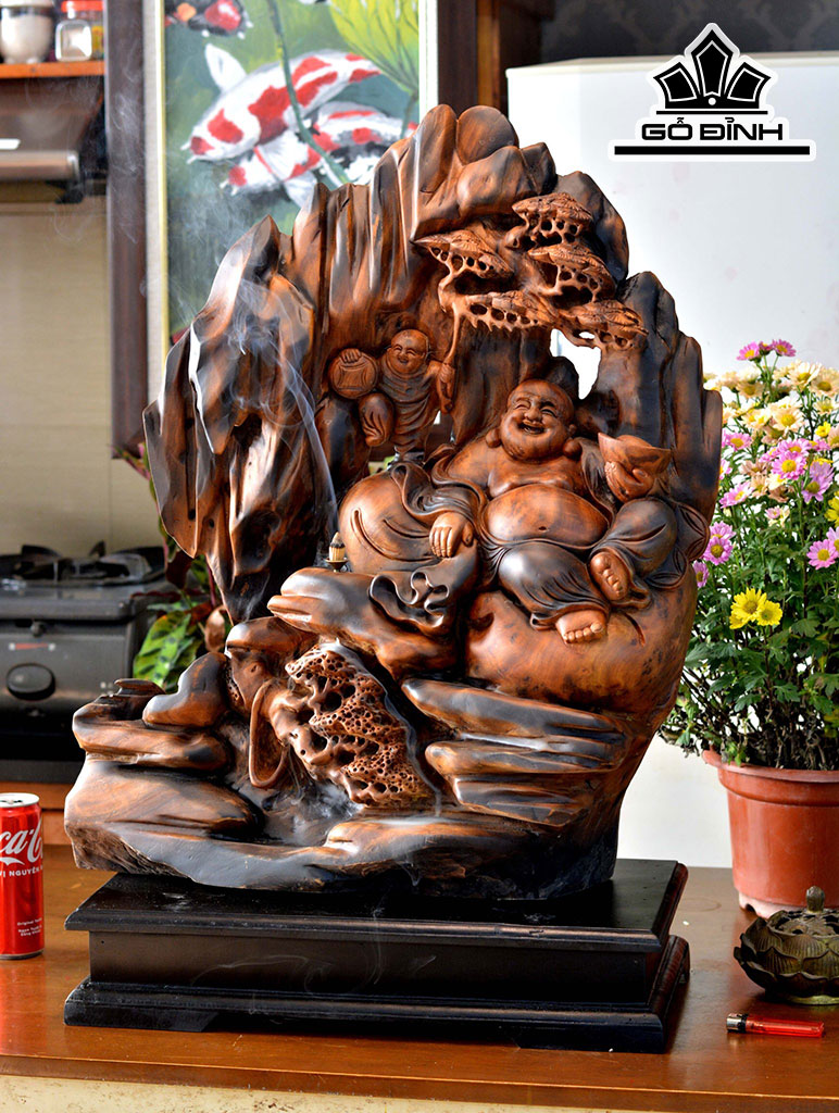 Tượng Phật Di Lặc Gỗ Nu Xá Xị Cao 79 Ngang 55 Sâu 20 (cm)