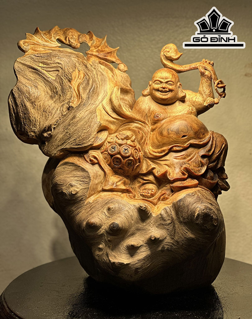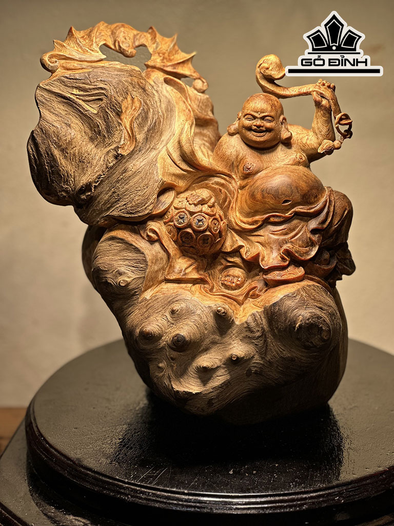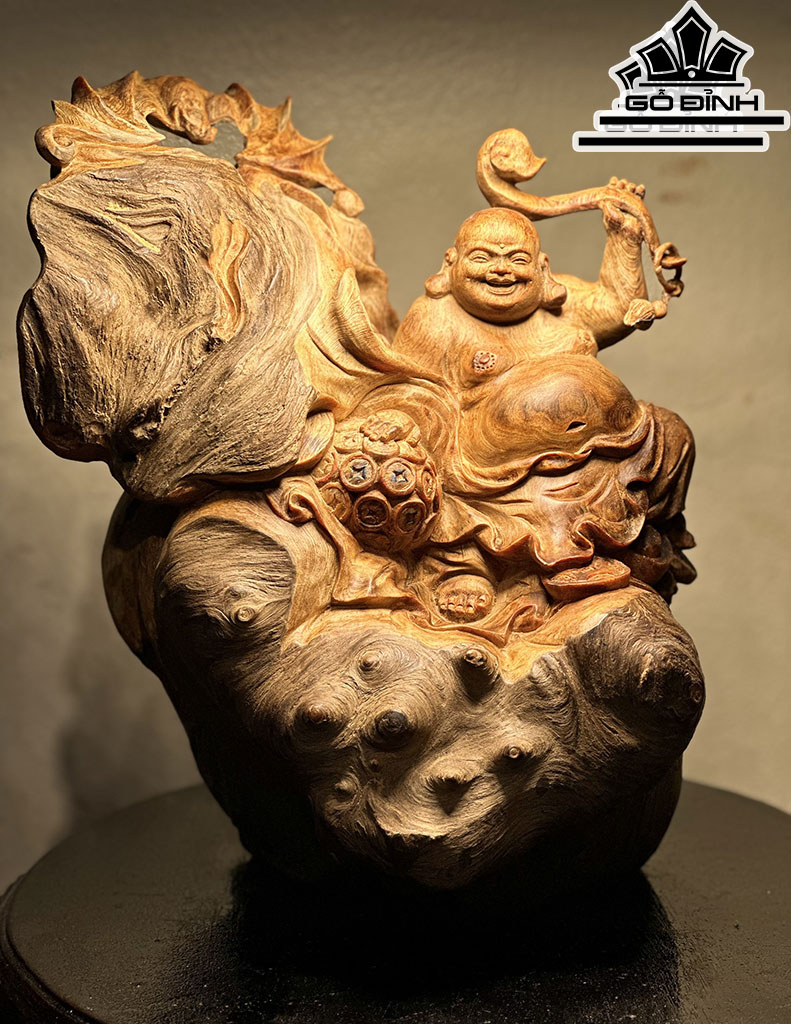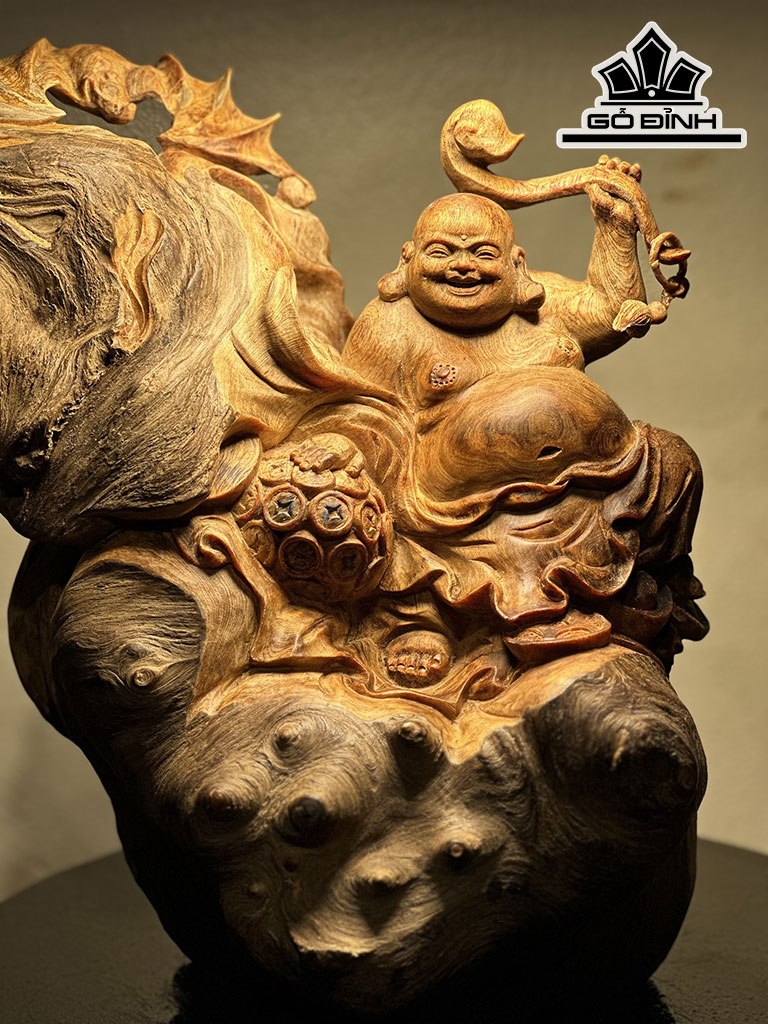 Tượng Phật Di Lặc Gỗ Pơ Mu Cao 29 Ngang 25 Sâu 22 (cm)