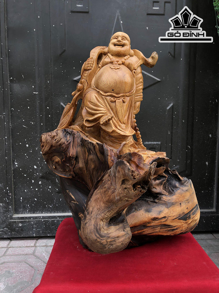 Tượng Phật Di Lặc Gỗ Pơ Mu Cao 57 Ngang 45 Sâu 37 (cm)