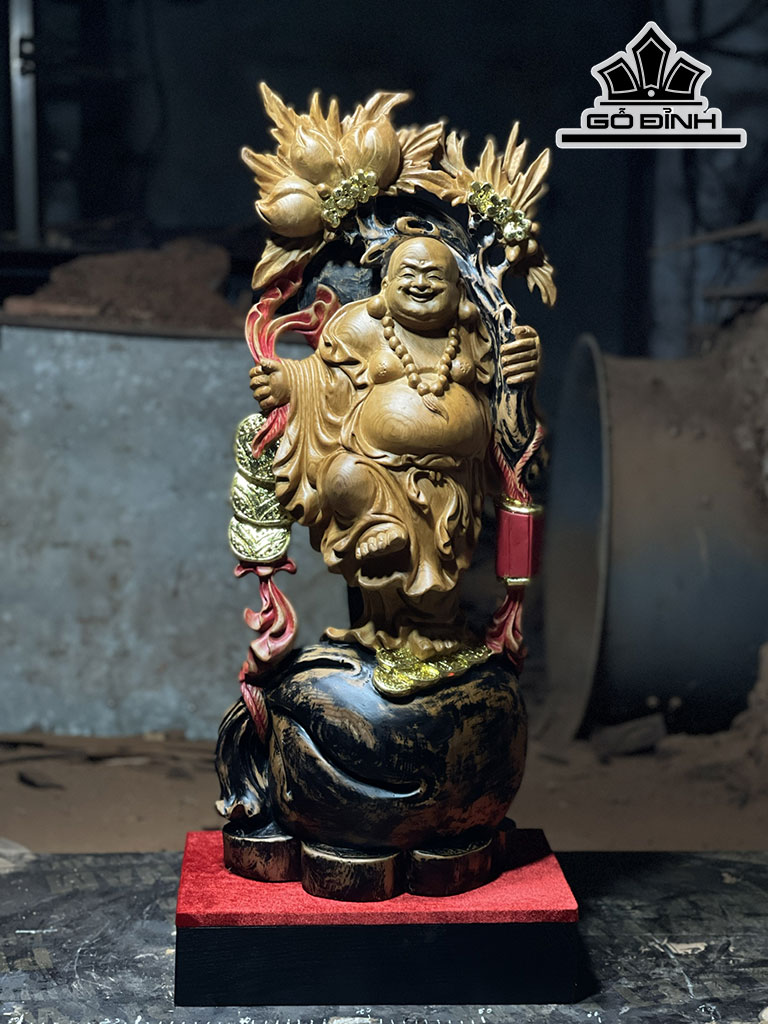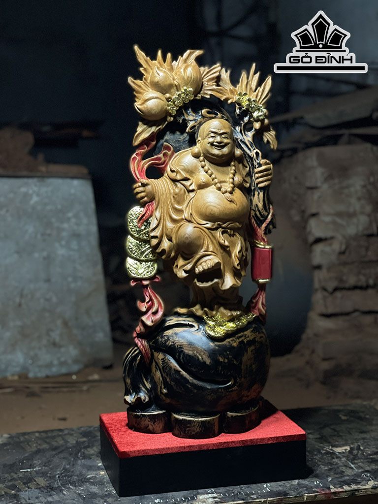 Tượng Phật Di Lặc Gỗ Pơ Mu Cao 70 Ngang 30 Sâu 23 (cm)