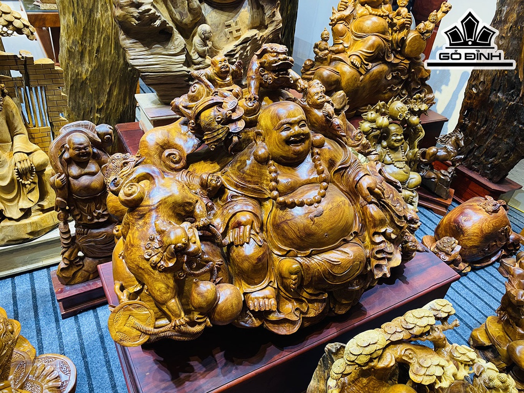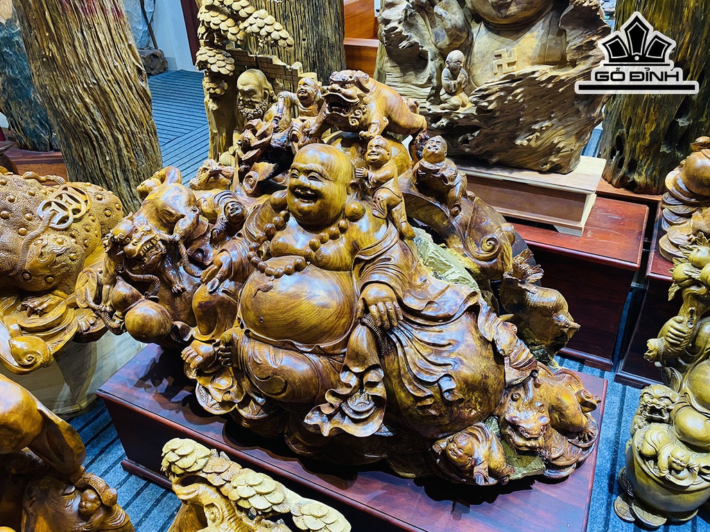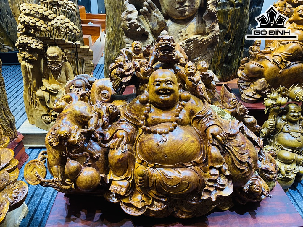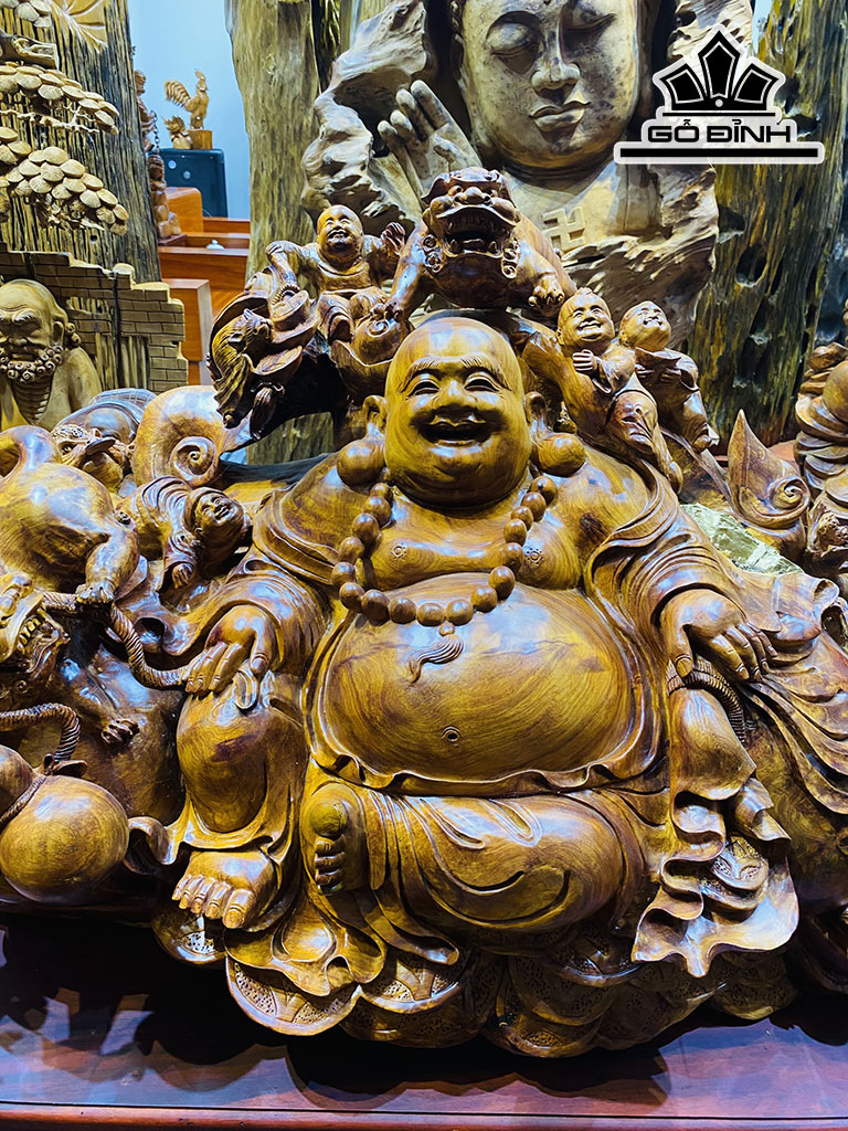 Tượng Phật Di Lặc Gỗ Sụn Hương Ngang 120 Cao 60 Sâu 60 (cm)