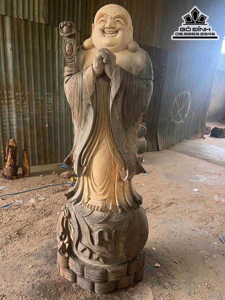 Tượng Phật Di Lặc Gỗ Thủy Tùng Cao 180 Ngang 60 (cm)