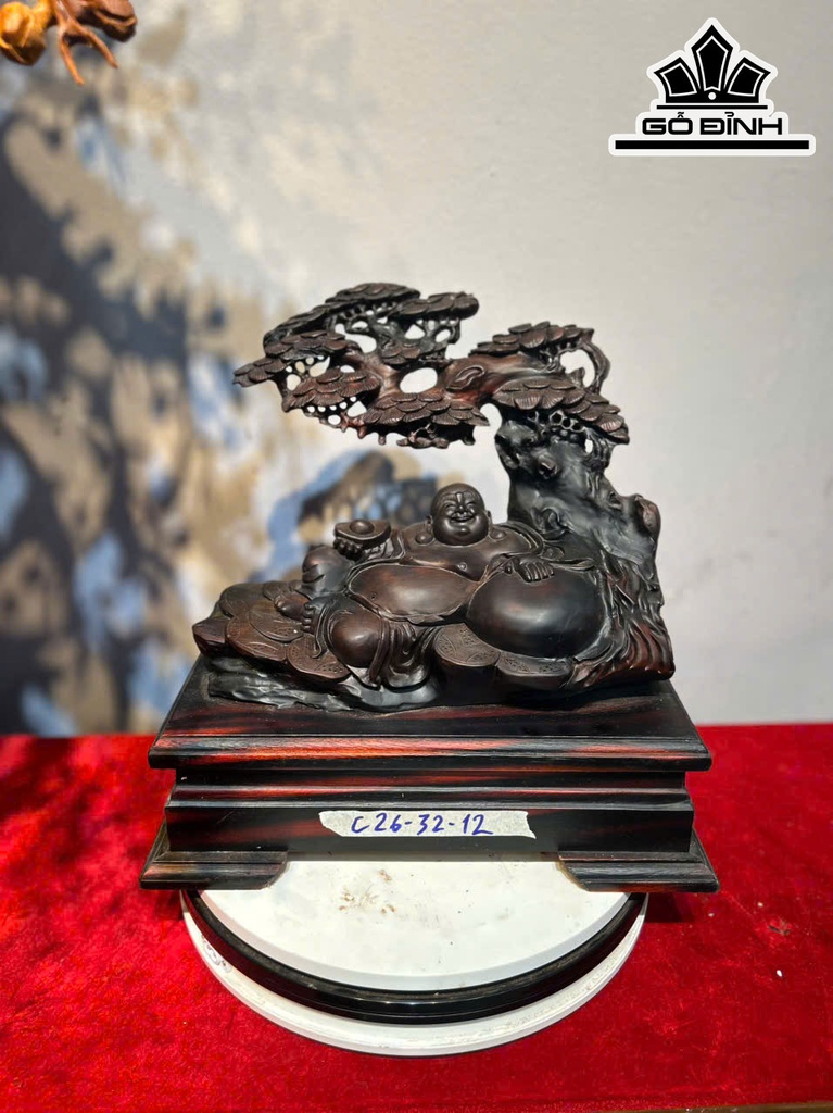 Tượng Phật Di Lặc Gỗ Trắc Cao 26 Ngang 32 Sâu 12 (cm)