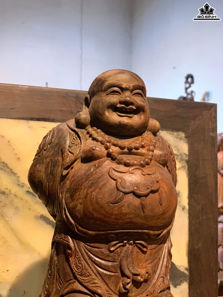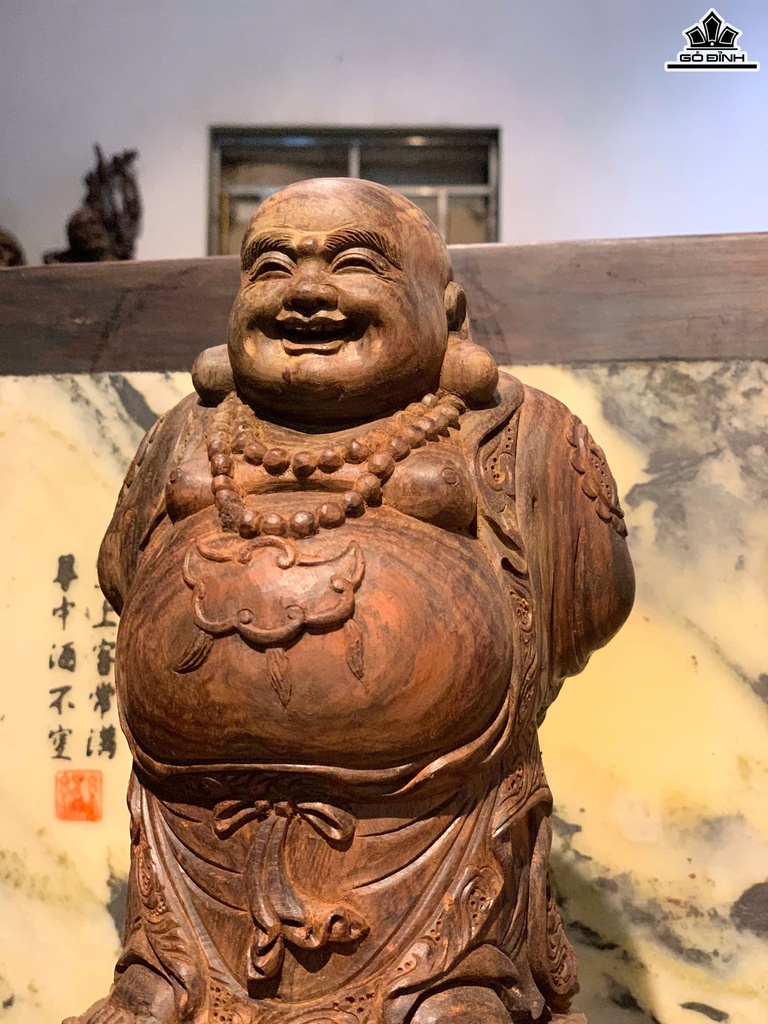 Tượng Phật Di Lặc Gỗ Trắc Cao 30 Ngang 13,5 Sâu 13,5 (cm) - Kèm Kỷ 15x15x11 (cm)