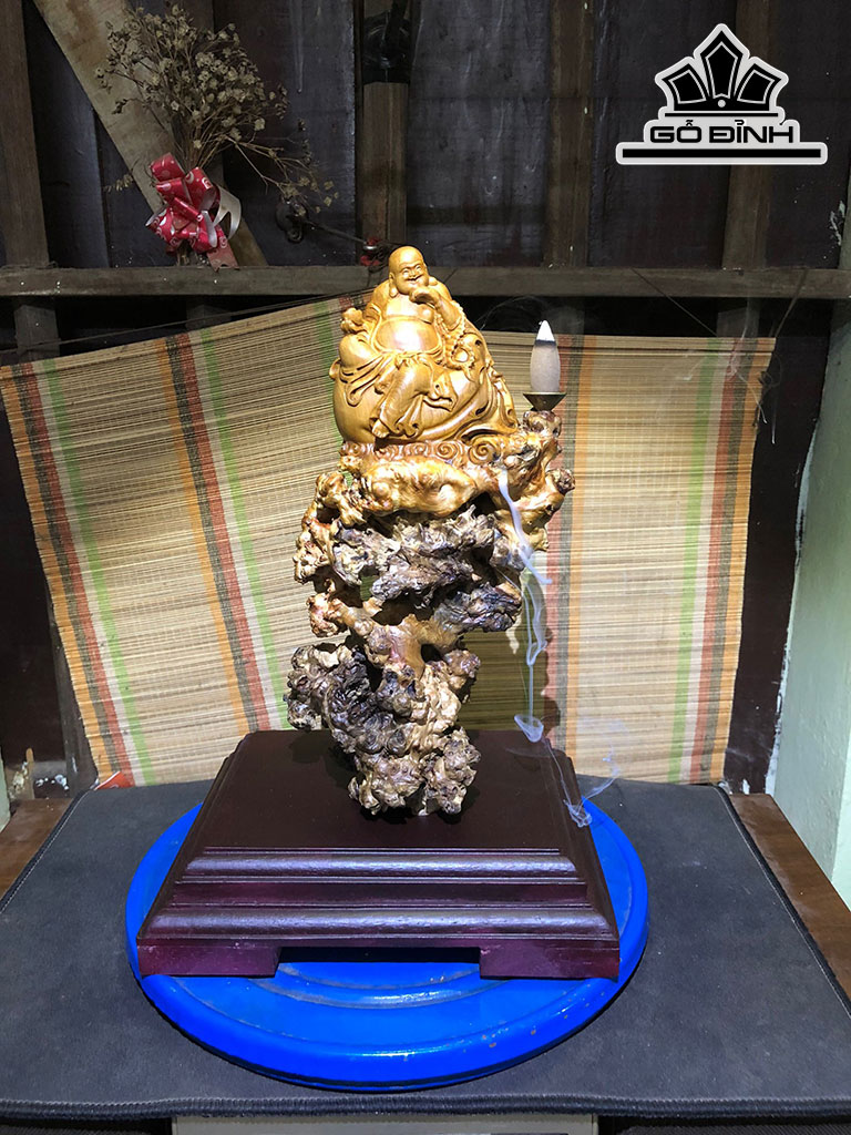 Tượng Phật Di Lặc Gỗ Trâm Vàng Cao 33 Ngang 15 Sâu 11 (cm)