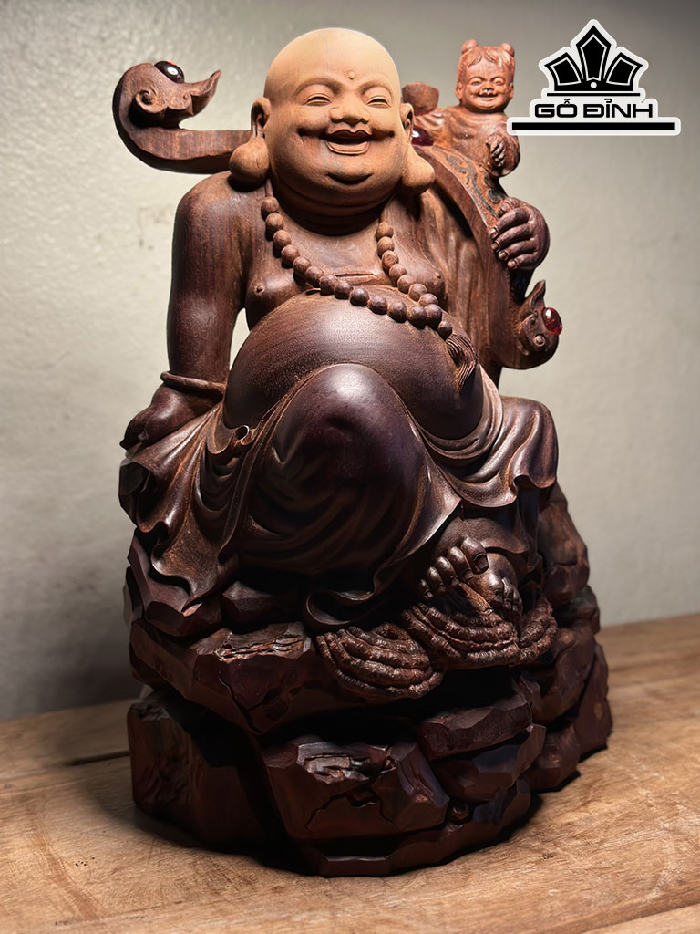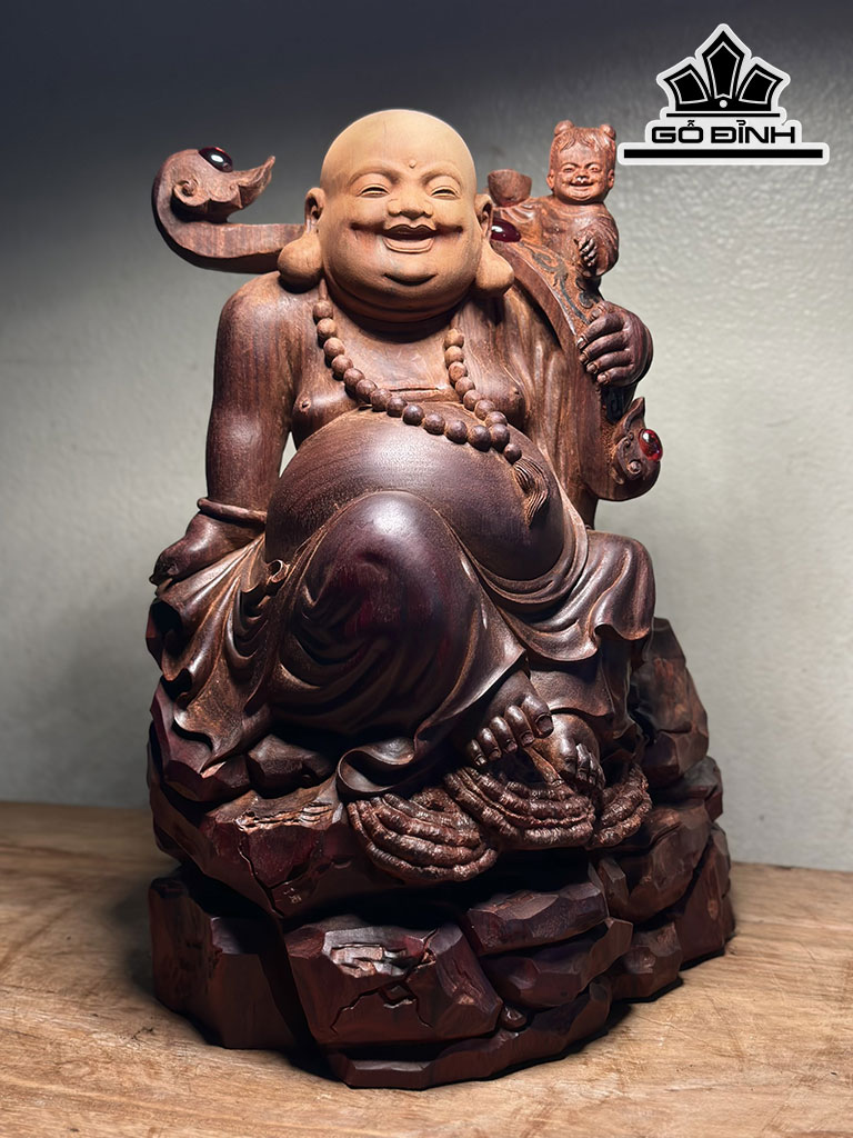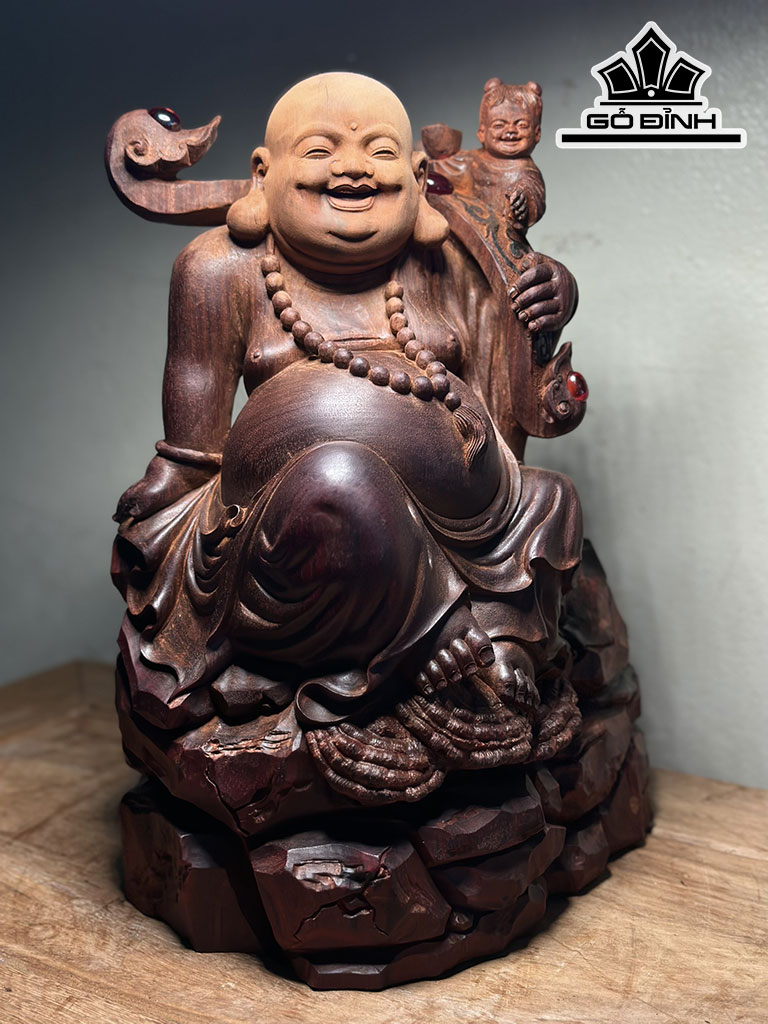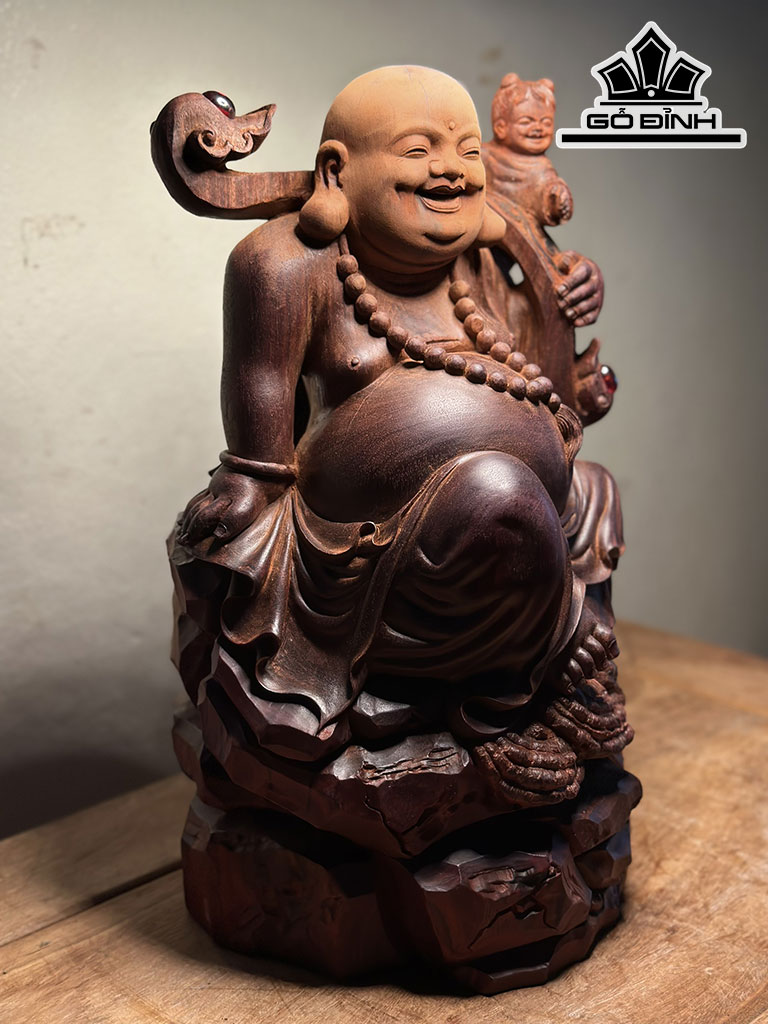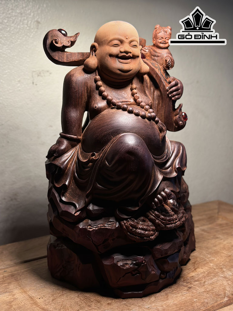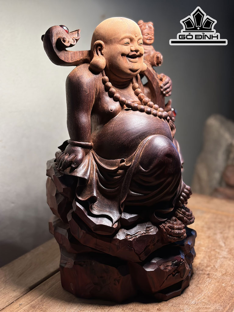 Tượng Phật Di Lặc Gỗ Tử Đàn Cao 32 Ngang 27 Sâu 20 (cm)