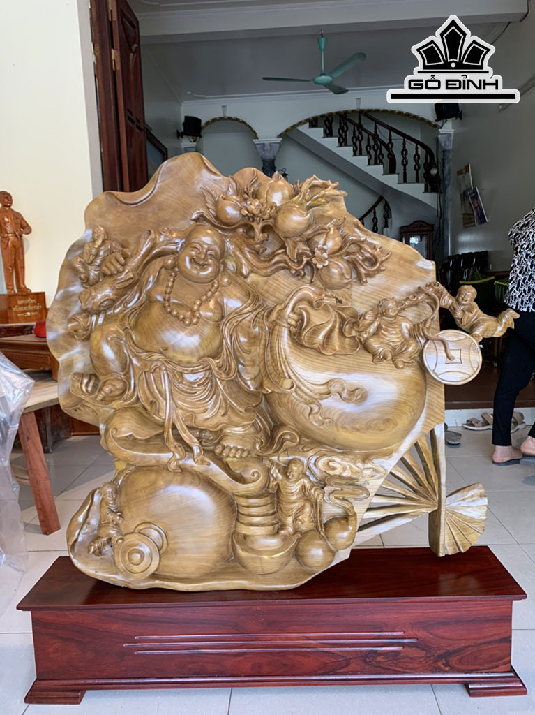 Tượng Phật Di Lặc Gỗ Xá Xị Cao 120 Ngang 130 Sâu 25 (cm)