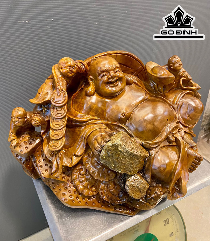 Tượng Phật Di Lặc Gỗ Xá Xị Cao 28 Ngang 45 Sâu 28 (cm)