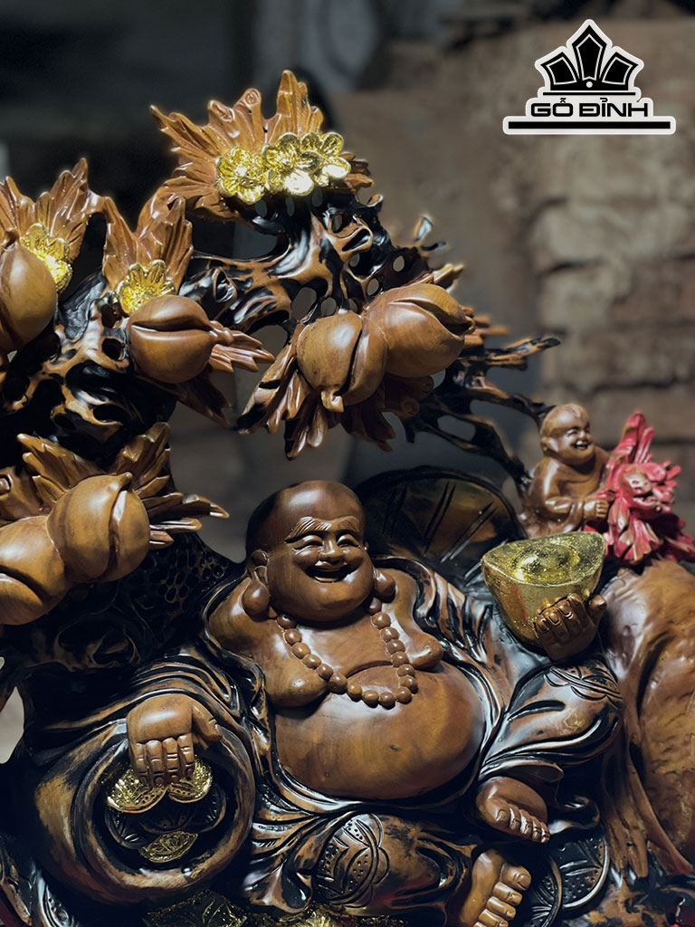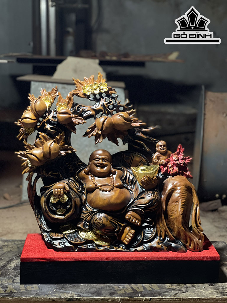 Tượng Phật Di Lặc Gỗ Xá Xị Cao 56 Ngang 60 Sâu 16 (cm)