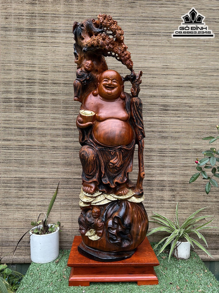 Tượng Phật Di Lặc Gỗ Xá Xị Cao 82 Ngang 24 Sâu 18 (cm)