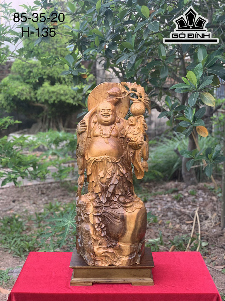Tượng Phật Di Lặc Gỗ Xá Xị Cao 85 Ngang 35 Sâu 20 (cm)
