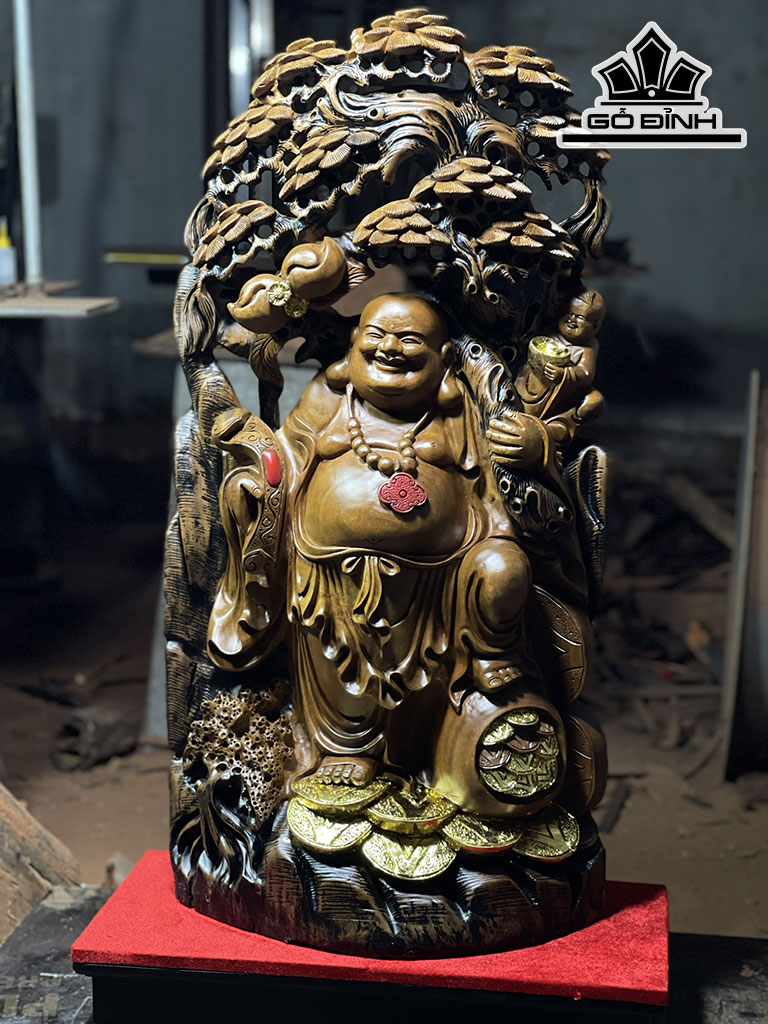 Tượng Phật Di Lặc Gỗ Xá Xị Cao 86 Ngang 45 Sâu 23 (cm)
