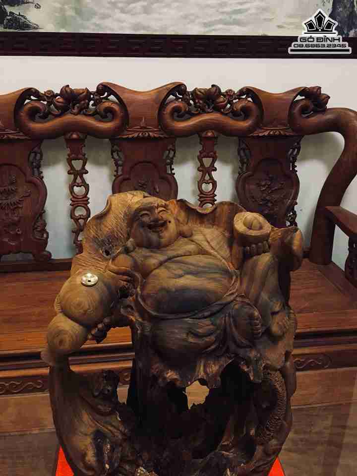 Tượng Phật Di Lăc Hoan Hỉ Gỗ Bách Xanh Cao 42 Ngang 23 Sâu 18 (cm)