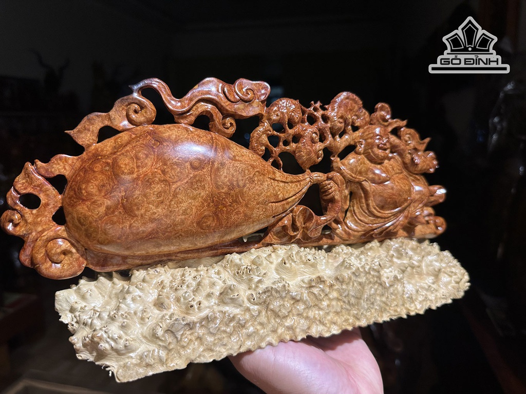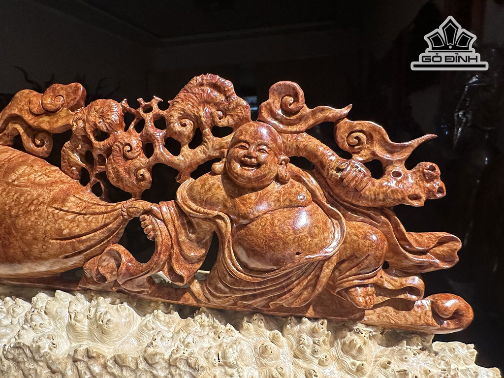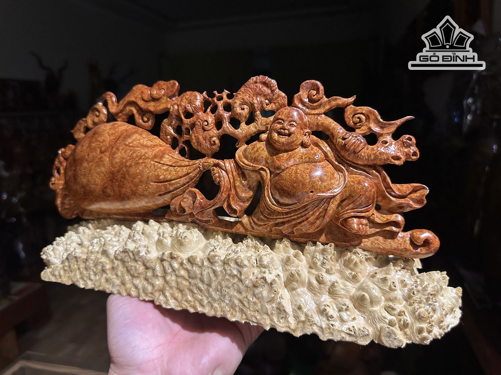 Tượng Phật Di Lặc Kéo Bao Gỗ Nu Hương Cao 13 Ngang 33 Sâu 4 (cm)