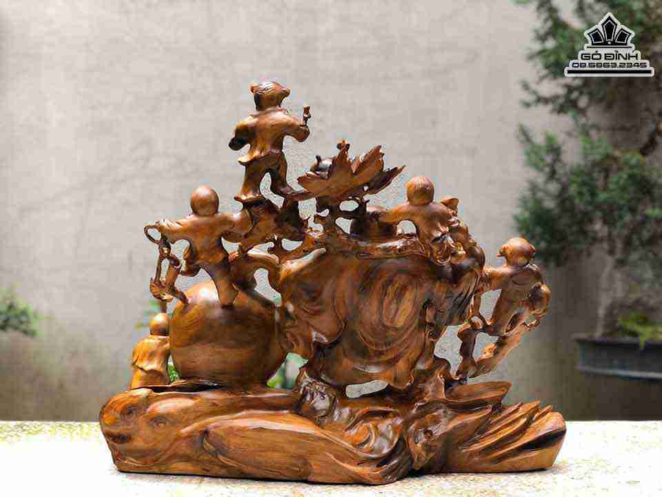 Tượng Phật Di Lặc Kéo Bao Tiền Gỗ Bách Xanh Cao 50 Ngang 62 Sâu 20 (cm)