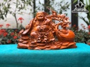 Tượng Phật Di Lặc Kéo Bao Tiền Gỗ Hương Cao 35 Ngang 52 Sâu 21 (cm)