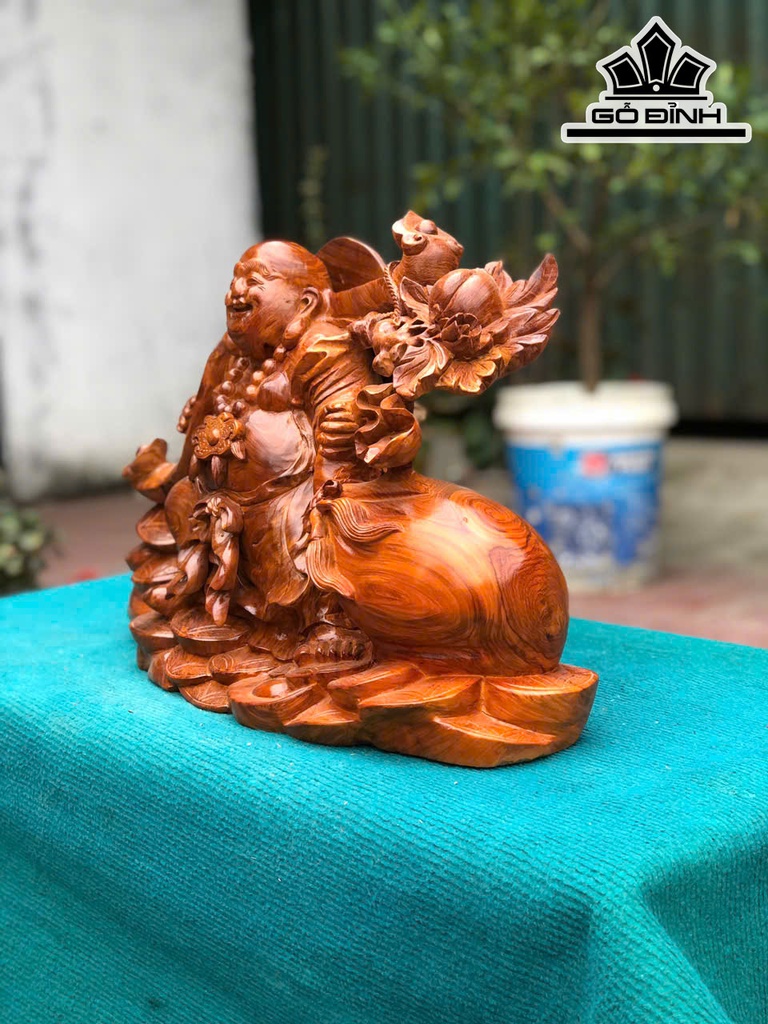 Tượng Phật Di Lặc Kéo Bao Tiền Gỗ Hương Cao 35 Ngang 52 Sâu 21 (cm)
