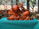 Tượng Phật Di Lặc Kéo Bao Tiền Gỗ Hương Cao 36 Ngang 60 Sâu 20 (cm)