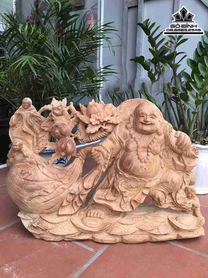 Tượng Phật Di Lặc Kéo Bao Tiền Gỗ Ngọc Am Cao 54 Rộng 81 Dày 18 (cm)