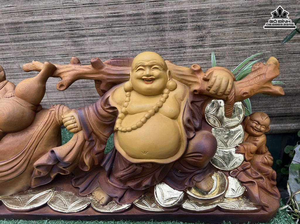 Tượng Phật Di Lặc Kéo Bao Tiền Gỗ Pơ Mu