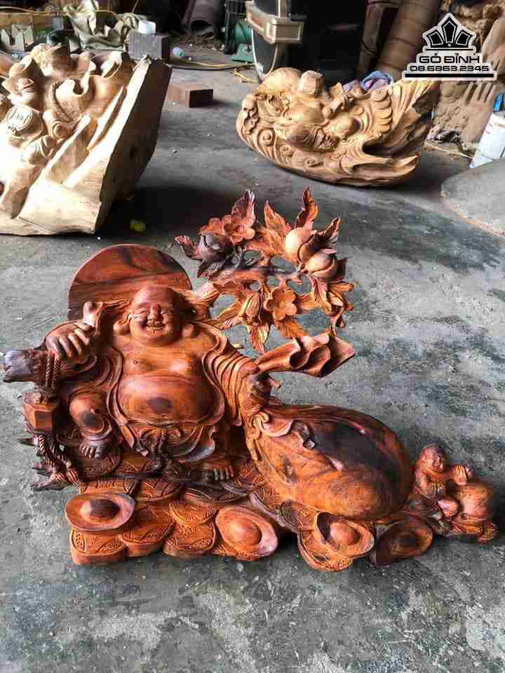 Tượng Phật Di Lặc Kéo Bao Tiền Gỗ Trắc Ngang 48 Cao 30 Sâu 20 (cm)