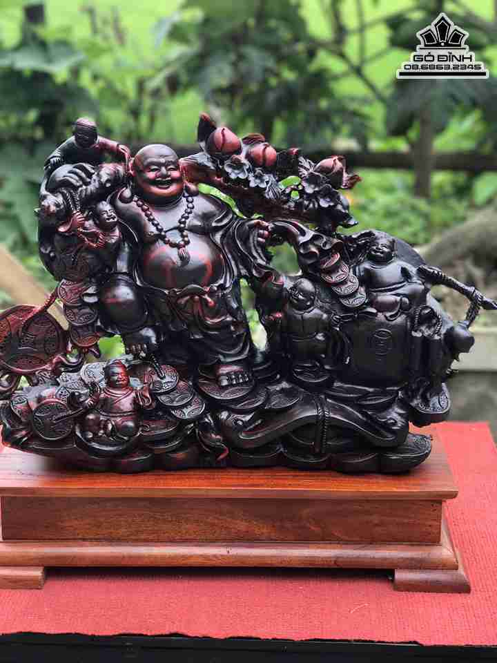 Tượng Phật Di Lặc Kéo Bao Tiền Gỗ Trắc Cao 51 Ngang 55 Sâu 25 (cm)