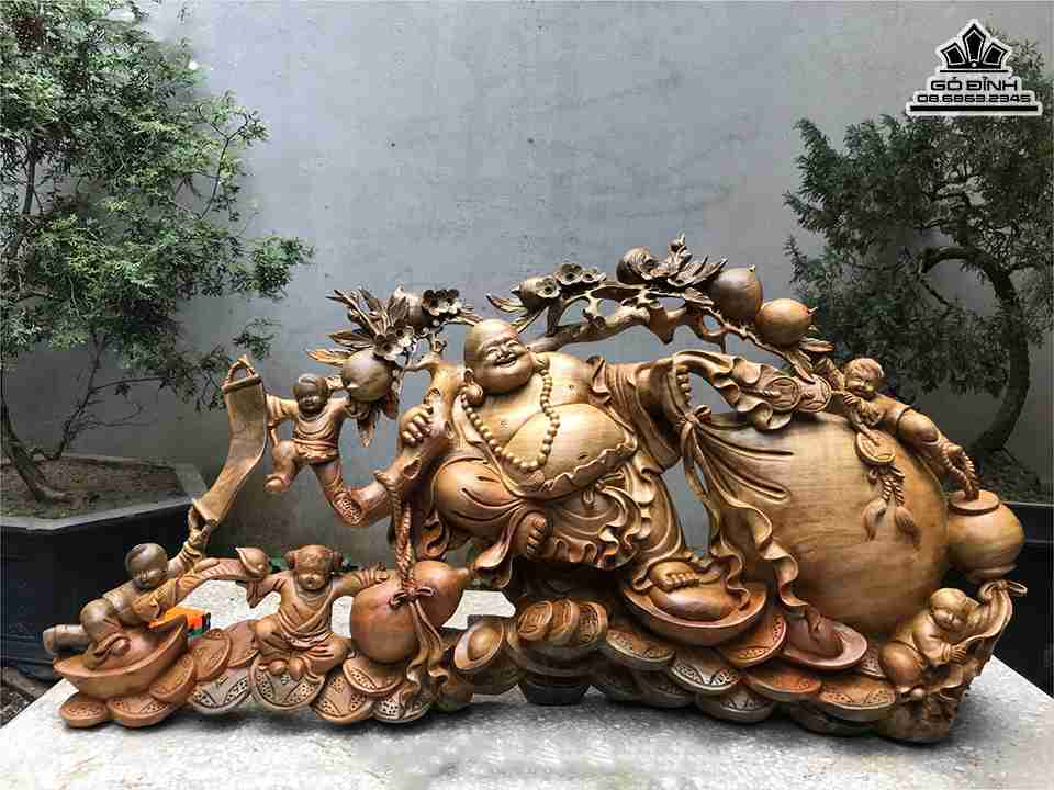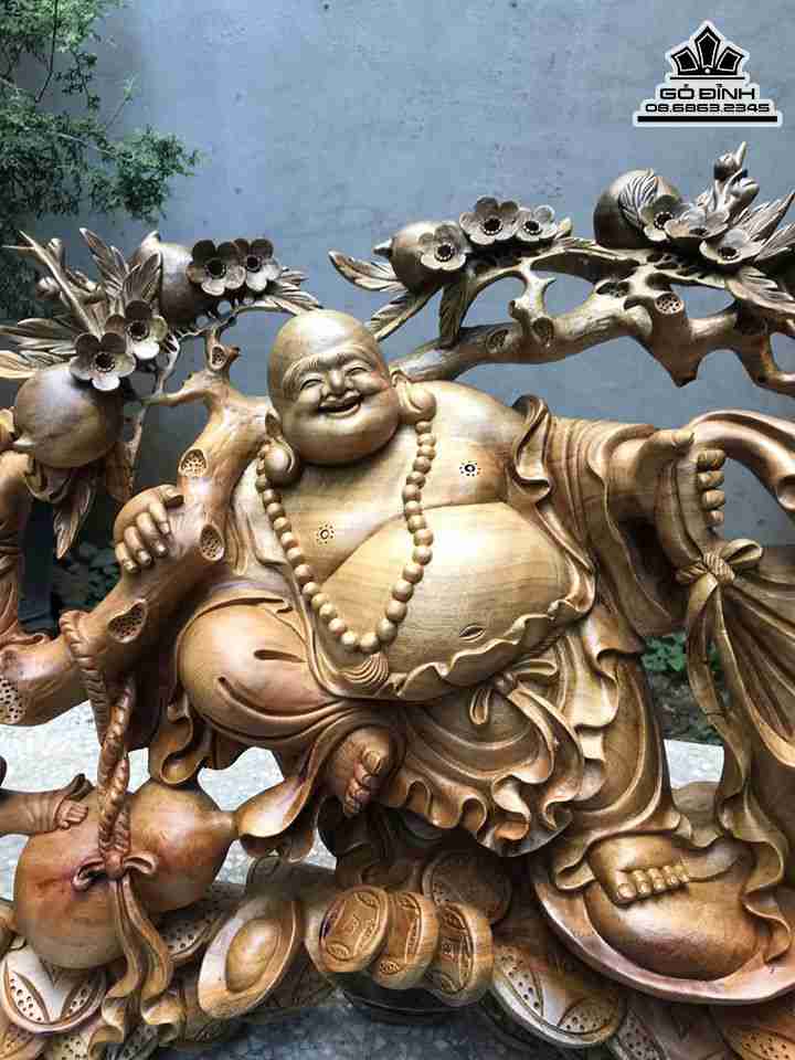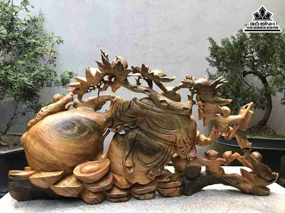 Tượng Phật Di Lặc Kéo Bao Tiền Gỗ Xá Xị ( Gù Hương ) Cao 56 Rộng 106 Dày 25 (cm)