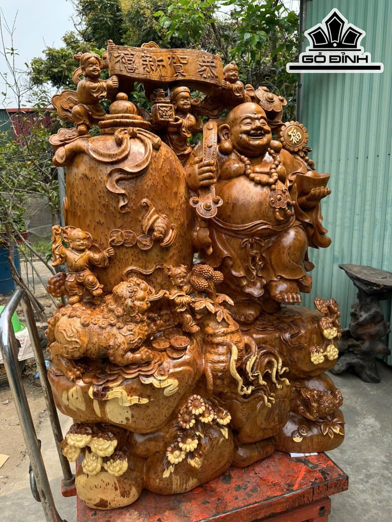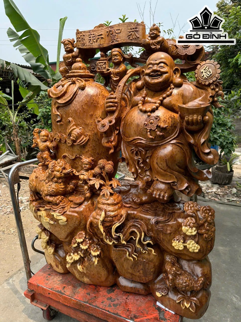 Tượng Phật Di Lặc Khang Ninh Gỗ Nu Ngọc Am Cao 137 Ngang 47 Sâu 96 (cm)