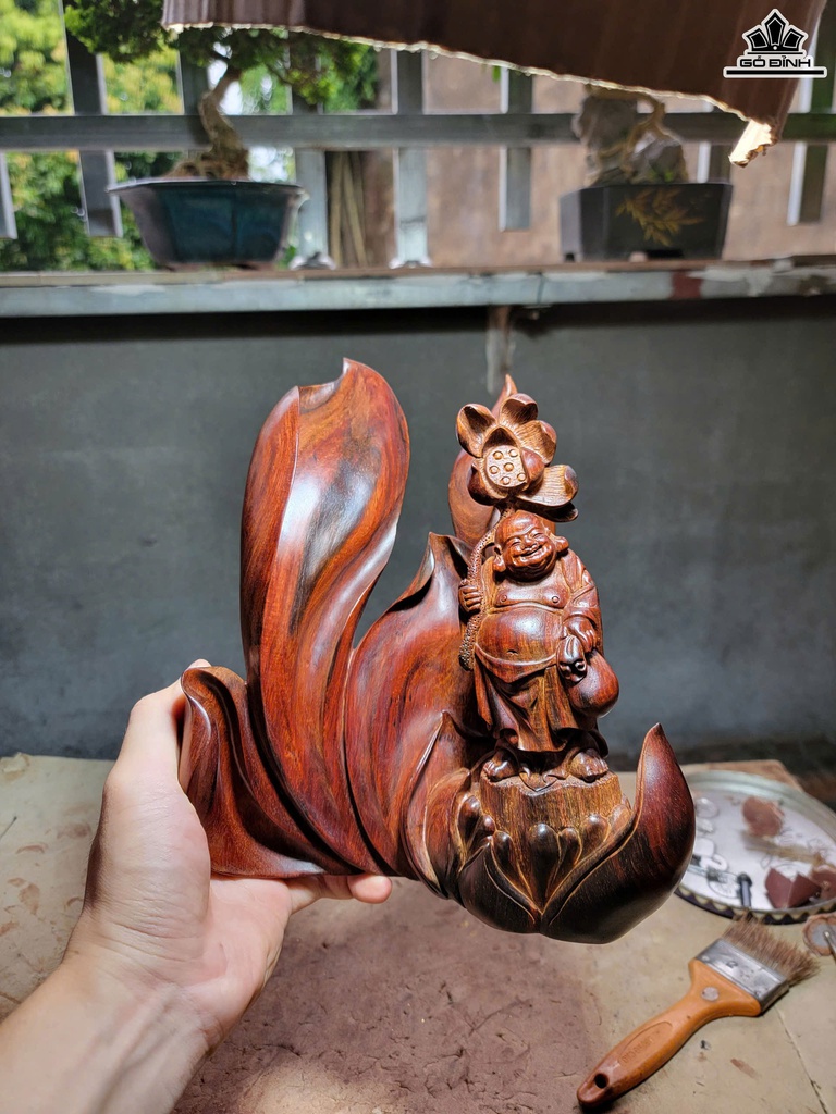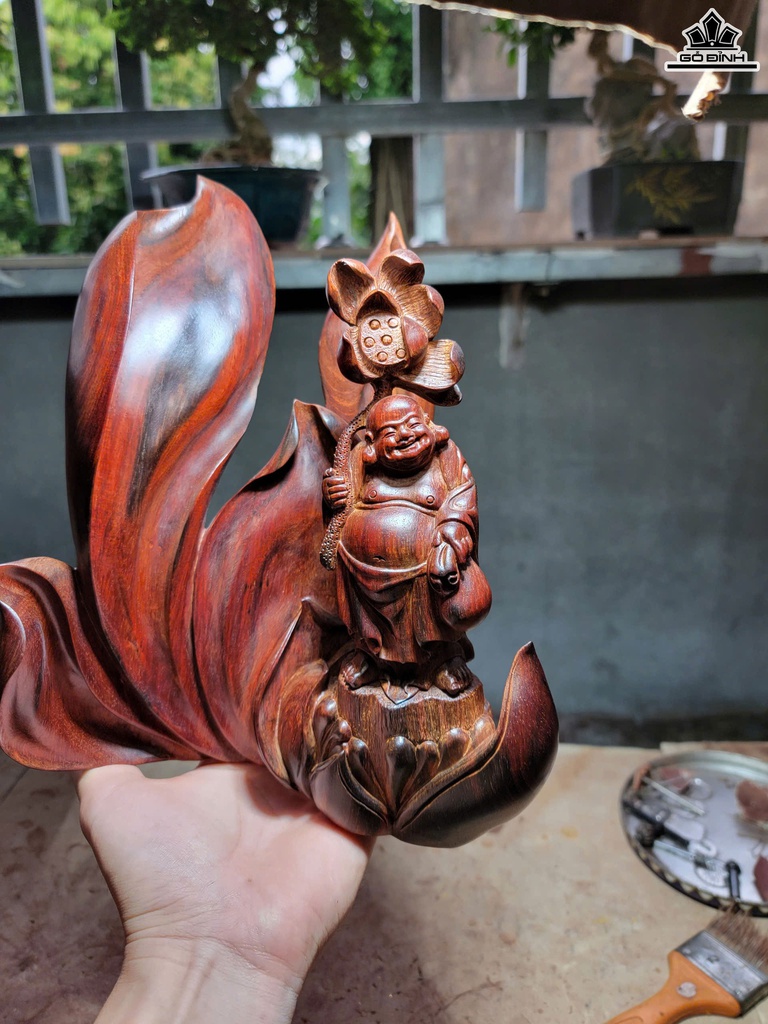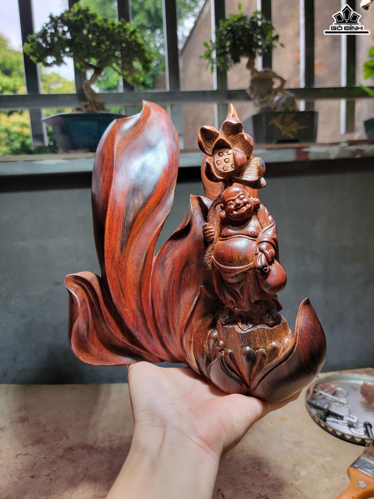 Tượng Phật Di Lặc Liên Hoa Gỗ Trắc Cao 25 Ngang 21 Sâu 13 (cm)