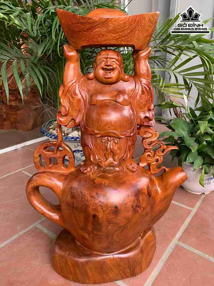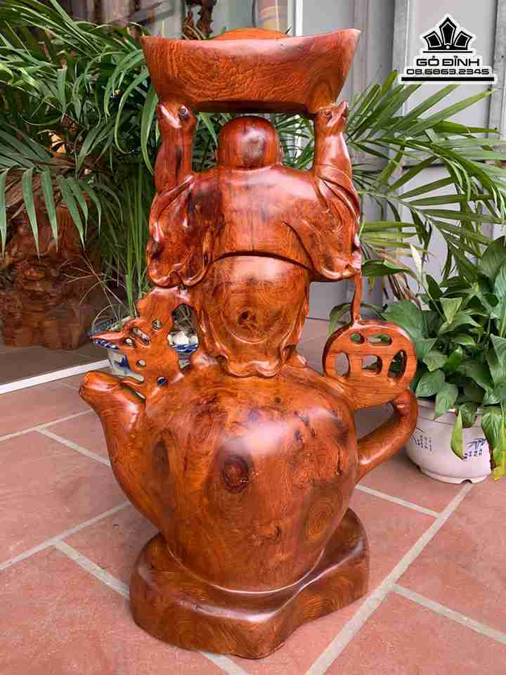 Tượng Phật Di Lặc Nâng Vàng Gỗ Hương Cao 62 Ngang 40 Sâu 24 (cm)
