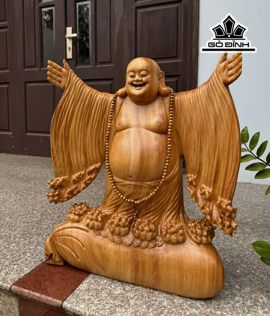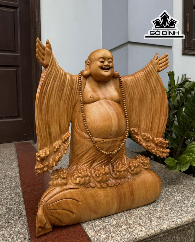 Tượng Phật Di Lặc Nghênh Hỷ Gỗ Ngọc Am Cao 57 Ngang 48 Sâu 17 (cm)