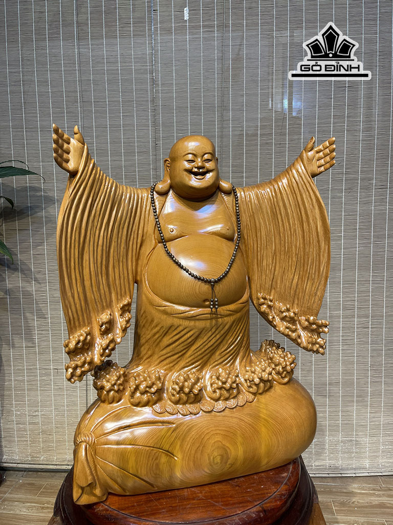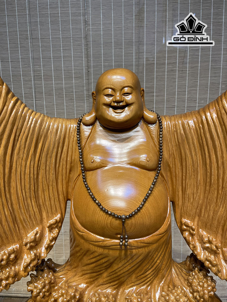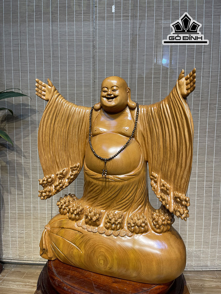 Tượng Phật Di Lặc Nghênh Hỷ Gỗ Ngọc Am Cao 65 Ngang 50 Sâu 18 (cm)