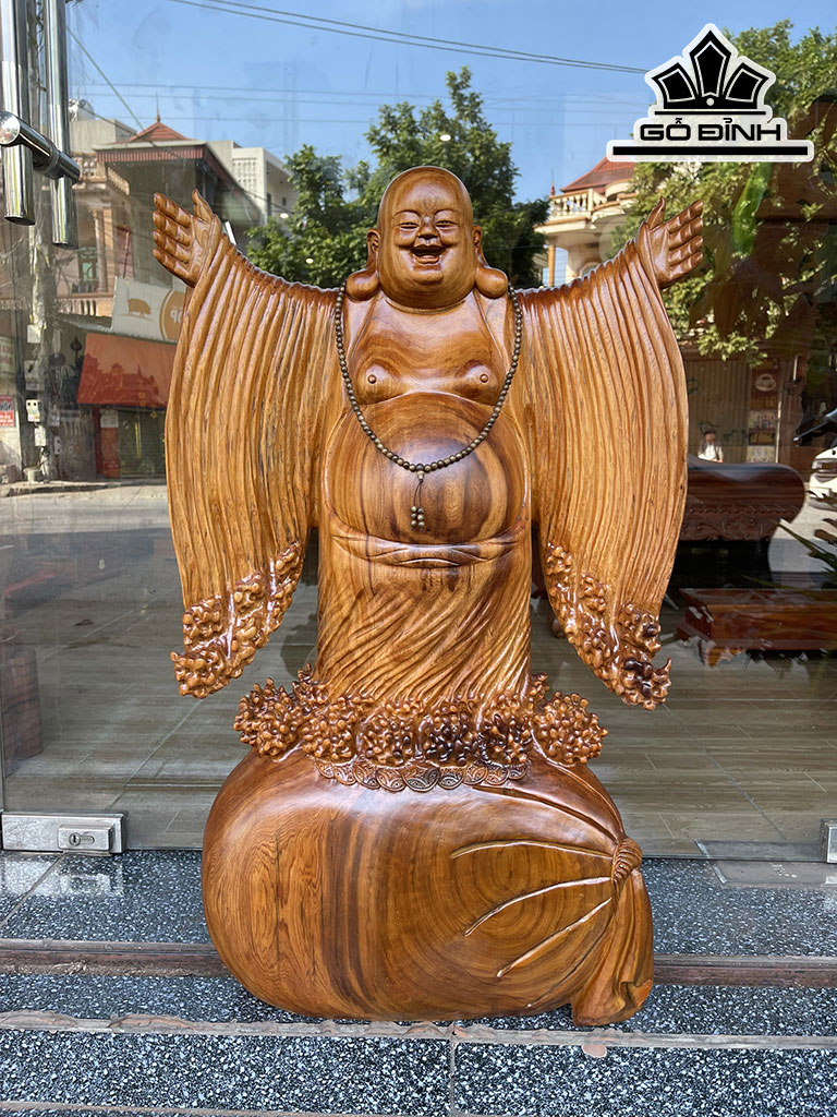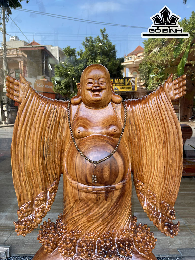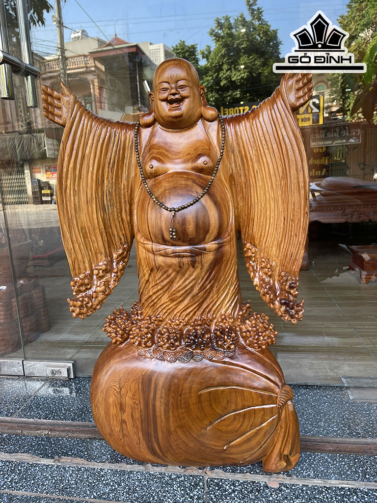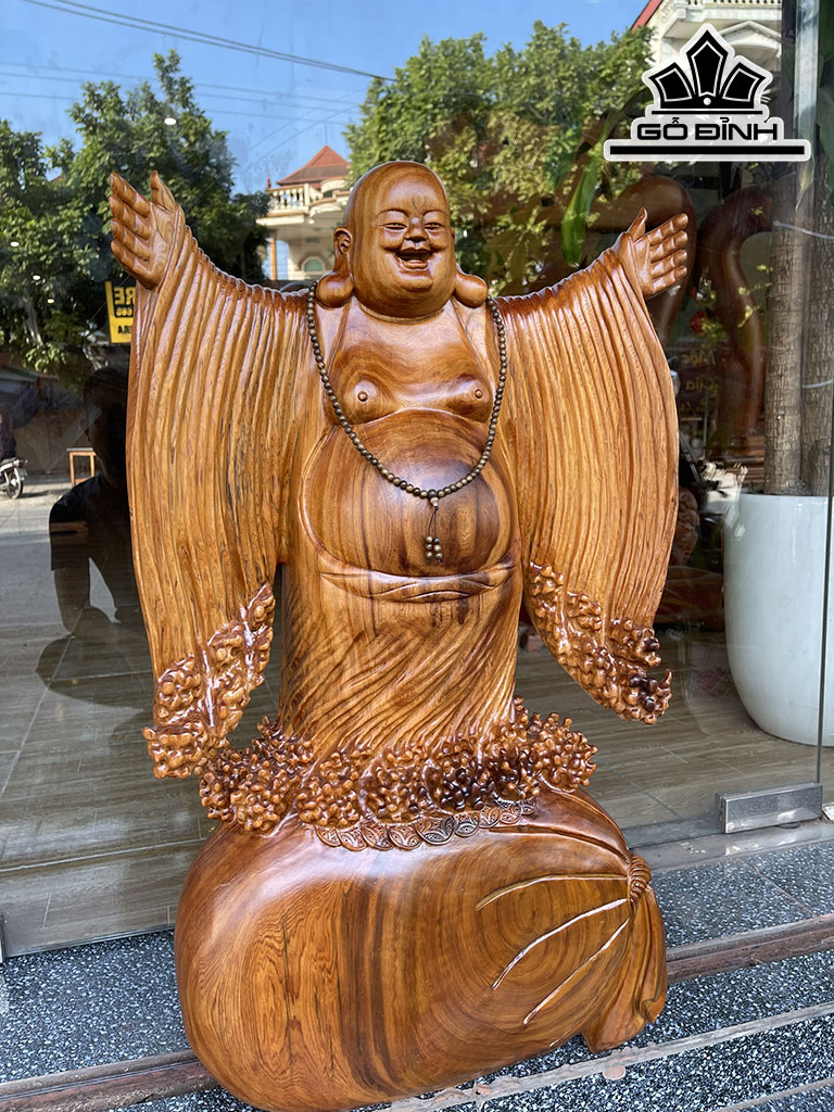Tượng Phật Di Lặc Nghênh Hỷ Gỗ Ngọc Am Cao 80 Ngang 46 Sâu 18 (cm)