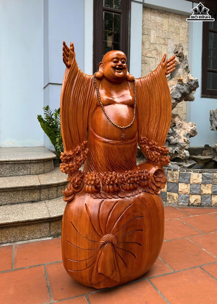 Tượng Phật Di Lặc Nghênh Hỷ Tứ Phương Gỗ Ngọc Am Cao 110 Ngang 55 Sâu 30 (cm)