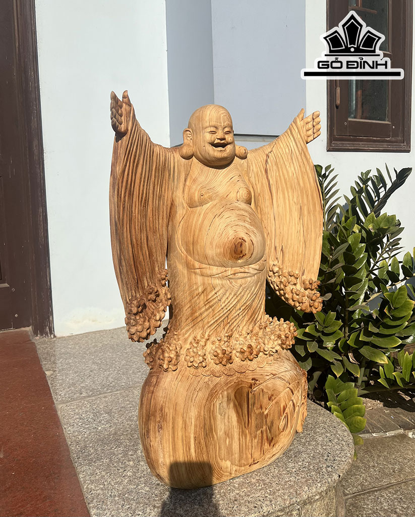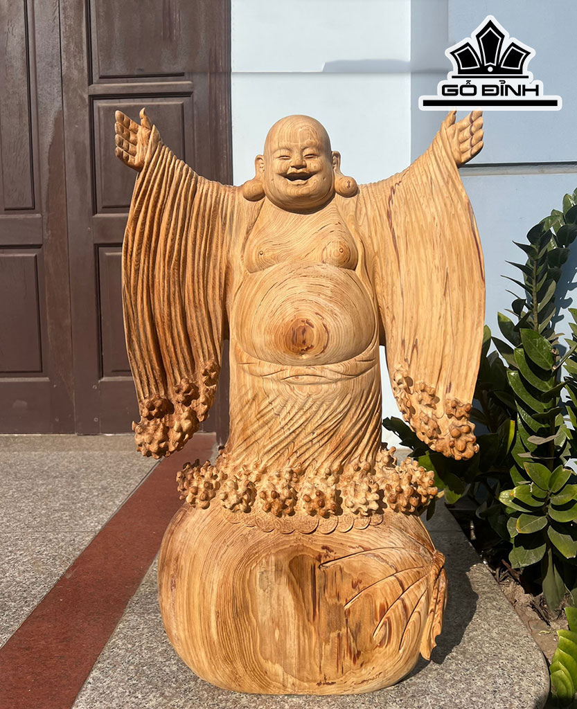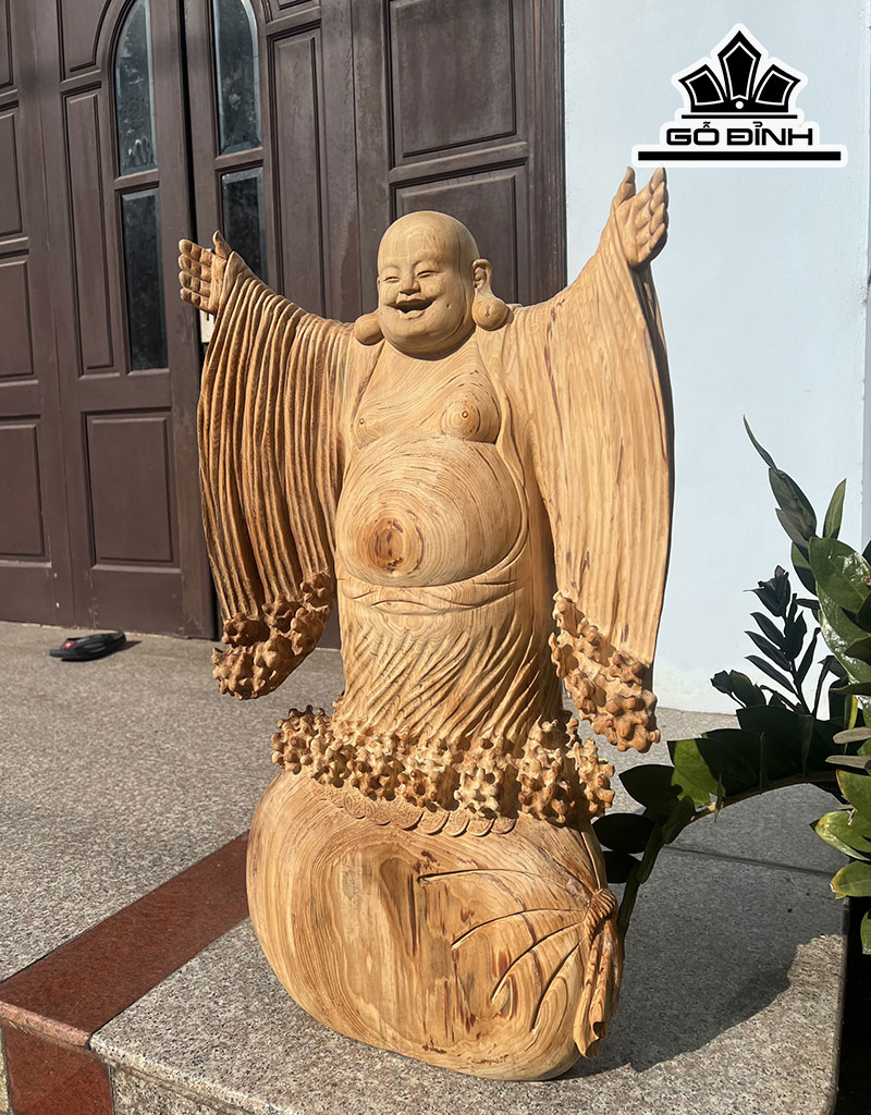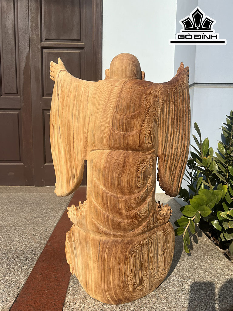 Tượng Phật Di Lặc Nghênh Hỷ Tứ Phương Gỗ Ngọc Am Cao 75 Ngang 45 Sâu 18 (cm)